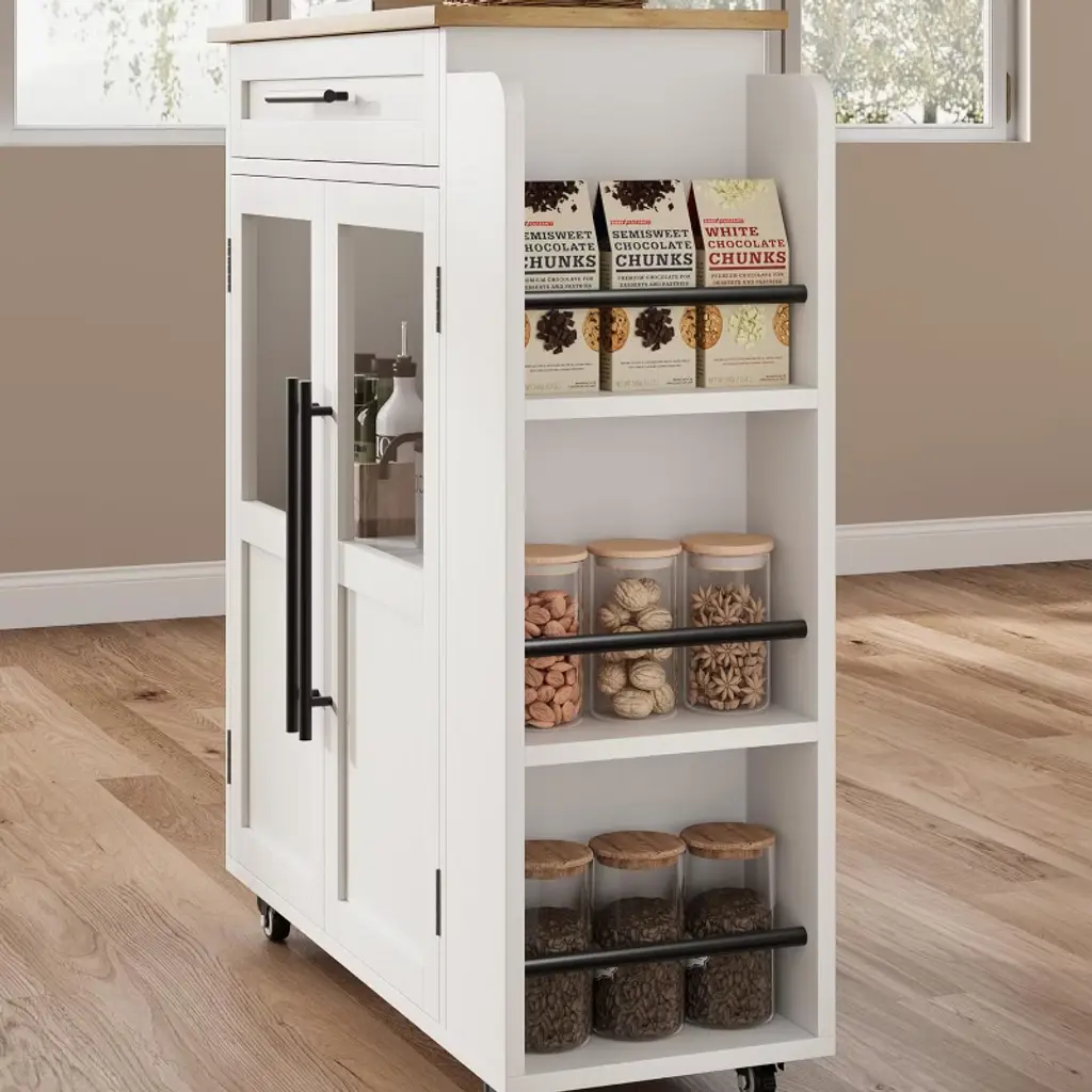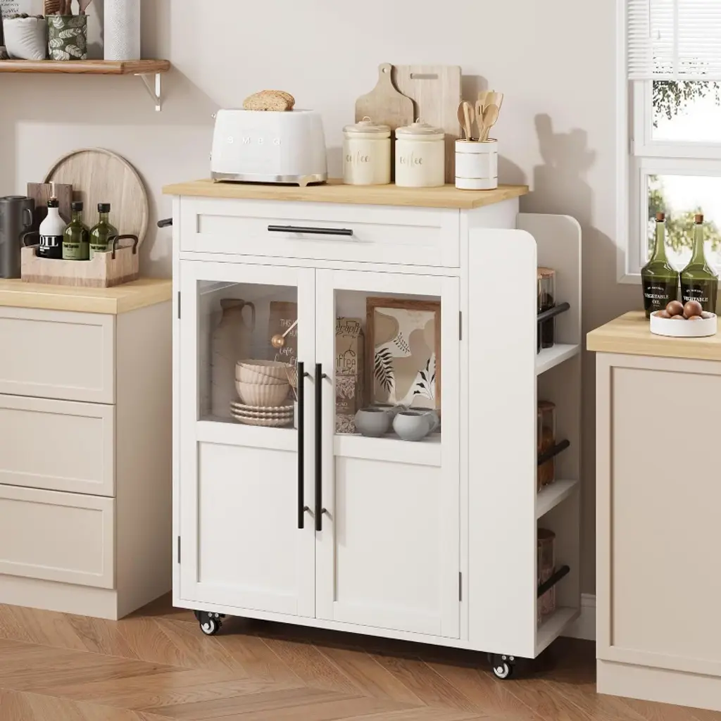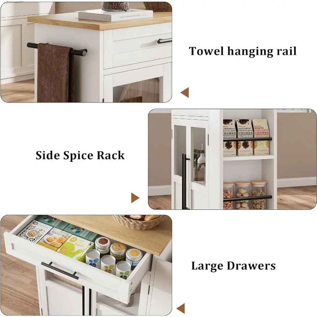 Mobile Kitchen Island Cart with 360 Rolling Wheels, Drawers, Spice Rack, Black Handle, Versatile Storage & Serving Cart for Kitchen, Dining Room