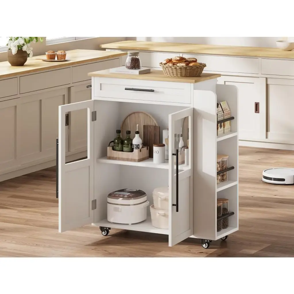 Nasitip Mobile Kitchen Island Cart With Rolling Wheels, Drawers, Spice Rack, Versatile Storage Cart(white+natural Oak)