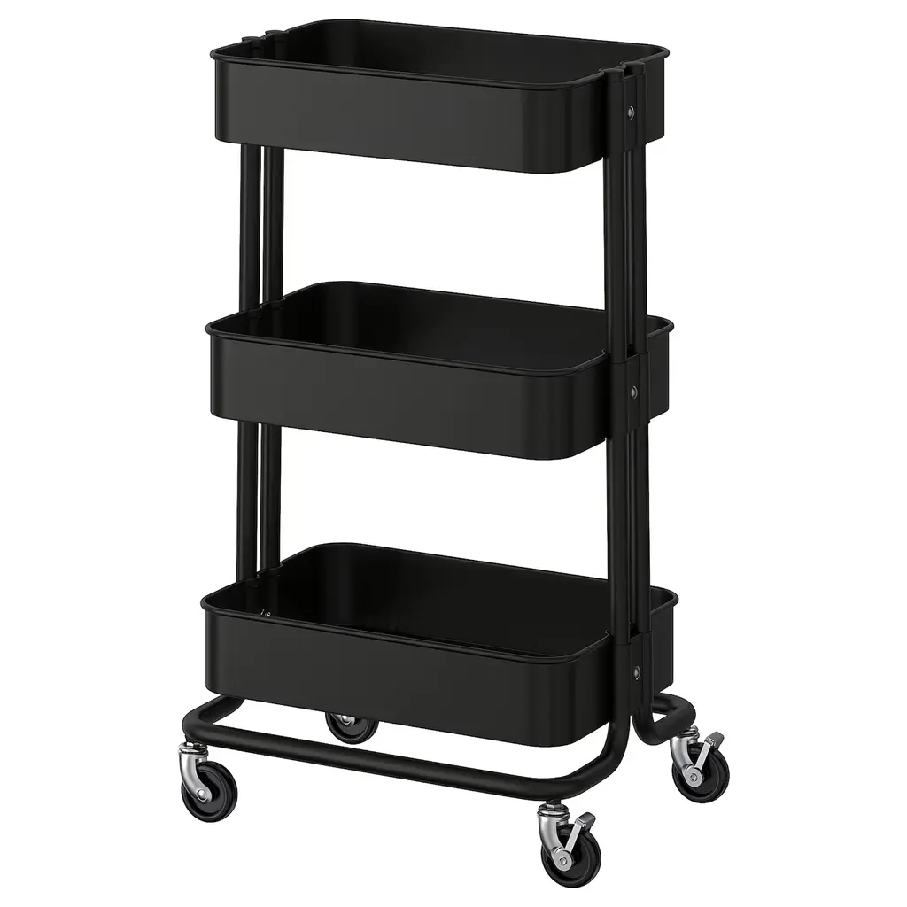 RÅSKOG Utility cart - black 13 3/4x17 3/4x30 3/8 ". Perfect for use in your kitchen or where you need some extra storage space. The sturdy construction and four castors make it easy for you to move the trolley and use it wherever you like. It even fits in tight spaces because of its small size.