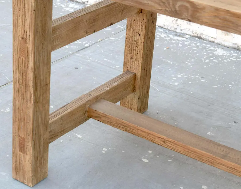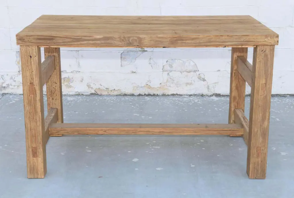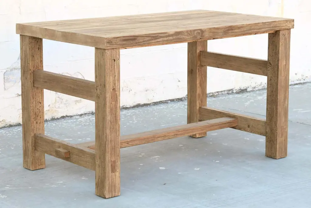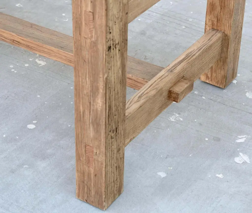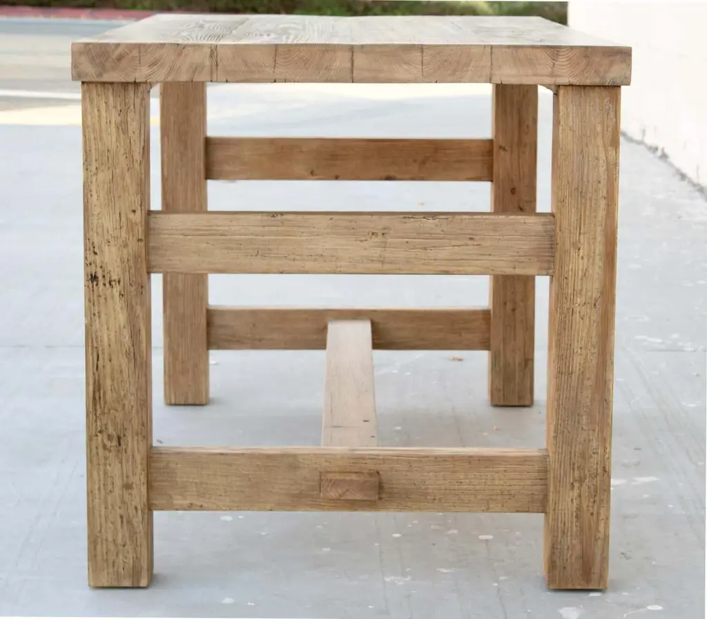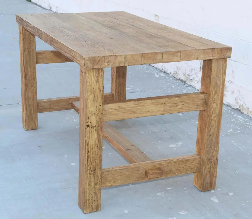 This kitchen island made from reclaimed pine is seen here in 36" x 60" x 36" H with a 2.5" top. We use only traditional carpentry techniques, no nails or metal fasteners of any kind. Just mortise and Tenon construction reinforced with handcut wooden dowels.