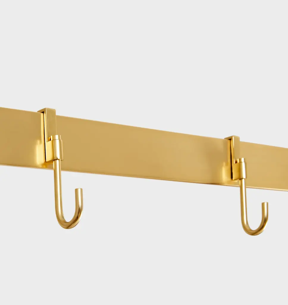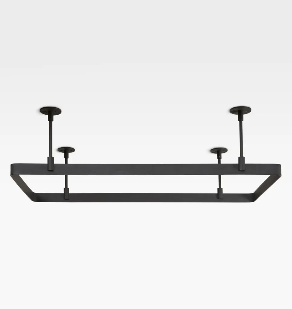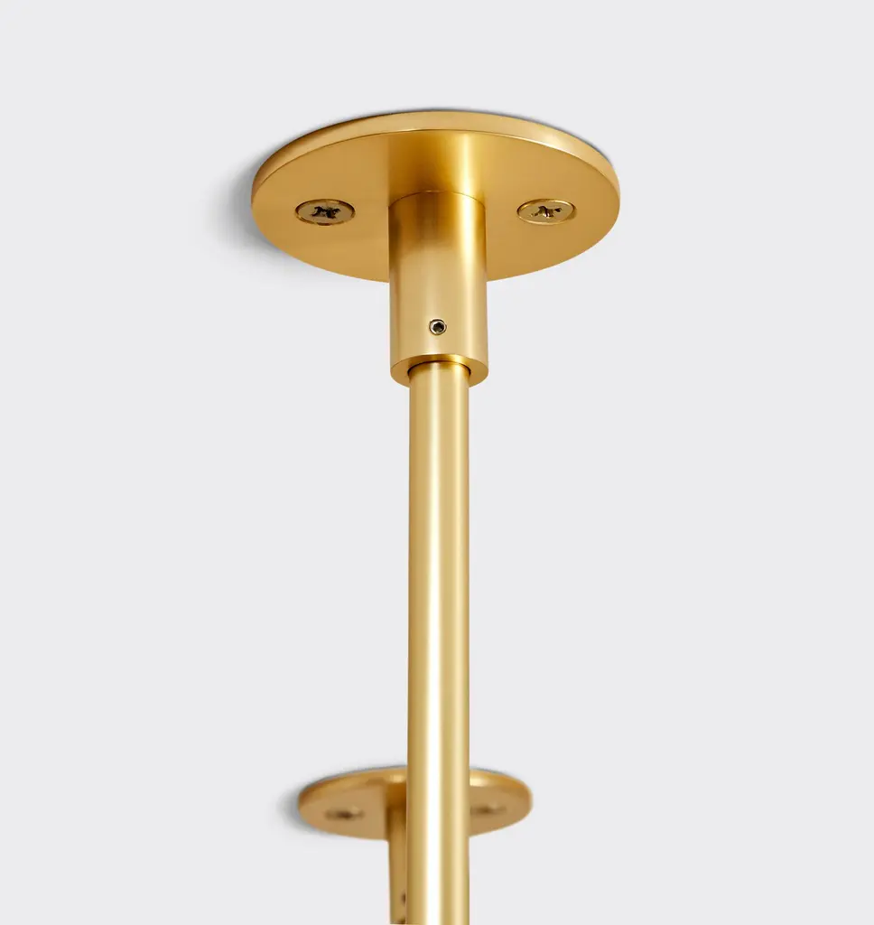 Expertly crafted from solid brass, our Emery Ceiling Pot Rack Frame makes an excellent space-saving solution for cooking tools and makes the perfect addition above any kitchen island. Mount around your pendant lighting for a statement-making design. Pair with our Emery Swiveling Hooks. Available in two finishes. Details You'll Appreciate Modern, space-saving solution Exclusive in-house design Crafted with solid brass in your choice of finish 6" down rods included; additional lengths sold separately Designed to use with our Emery Swiveling Hooks, sold separately Product Specifications Brass Mounting hardware included Imported