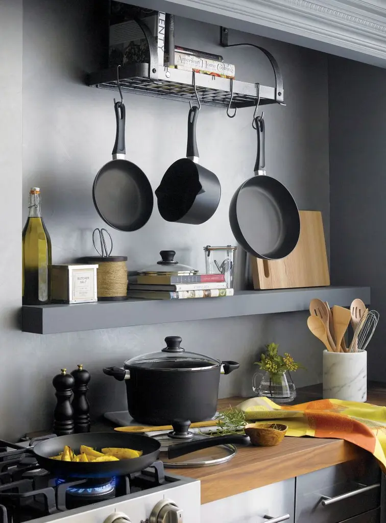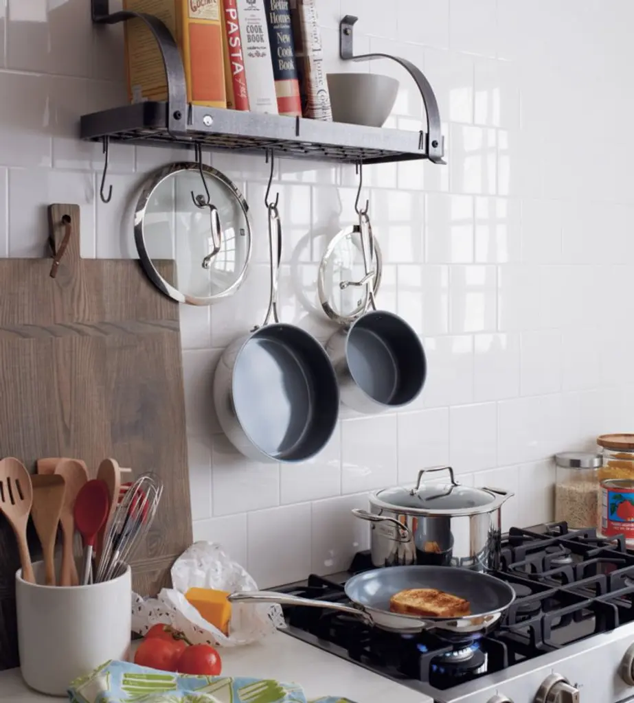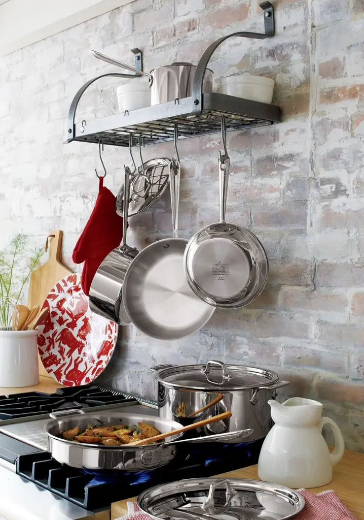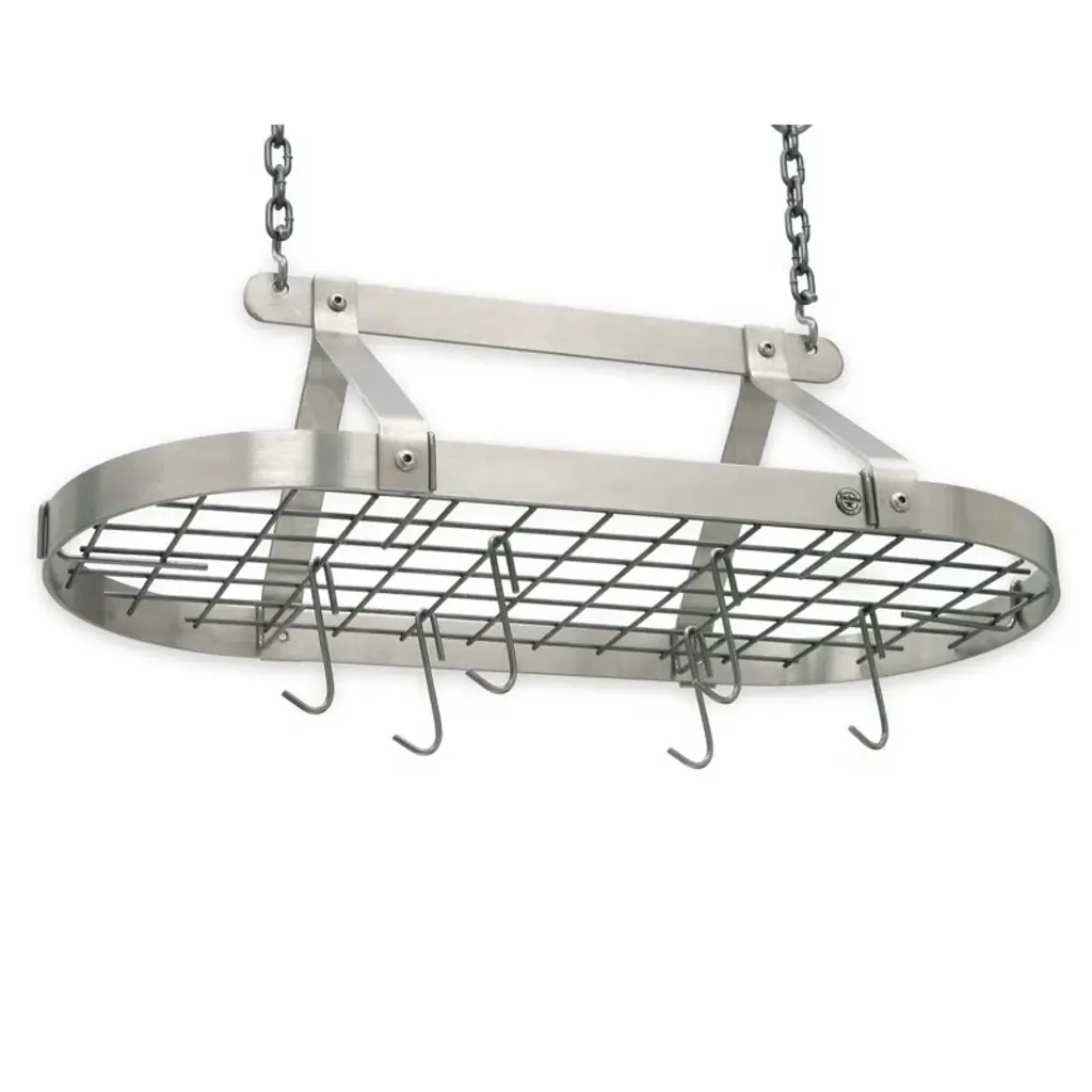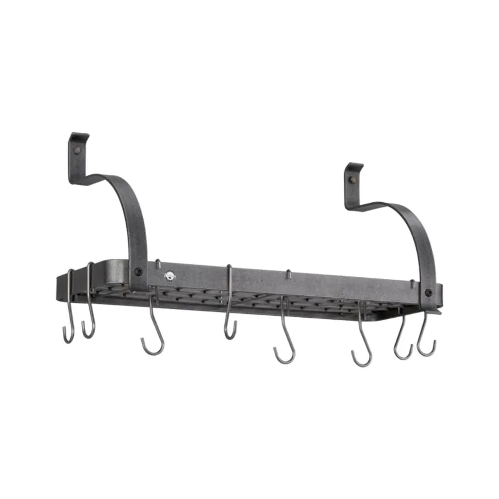 Designed just for us by Enclume, a leading pot rack manufacturer, this high-functioning, riveted steel rack combines professional appearance, easy installation, exclusive attachment toggles and a 200-pound load capacity. Superior hot-rolled steel construction features Enclume's signature hammered finish and durable acrylic coating. Wall-mount rack organizes cookbooks and cookware in one compact space. Includes 12 pot hooks.View all Enclume products
