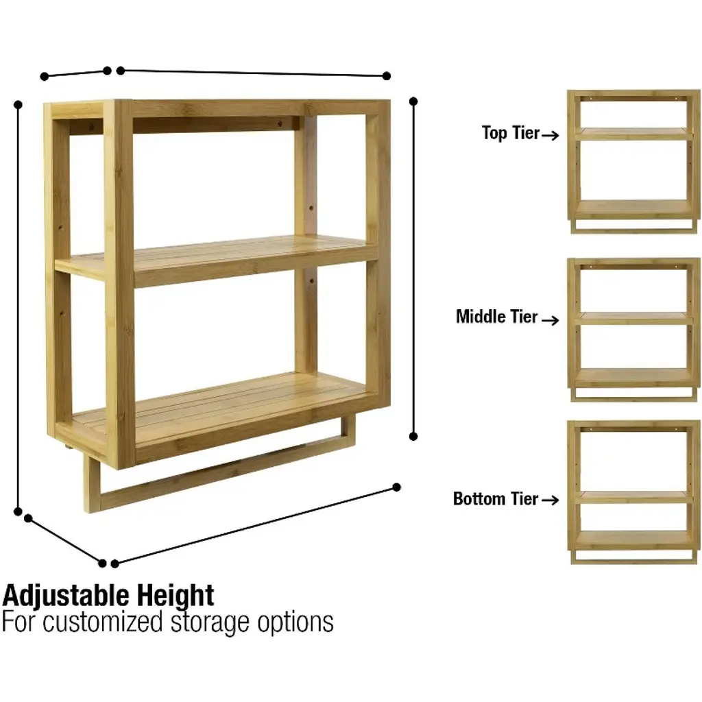 The Bamboo tower shelf provides wallmounted storage for bathroom towels, bath essentials, kitchen accessories and more. It keeps everything in sight, prevents clutter on floors and countertops. It keeps everything in sight and maximizes space