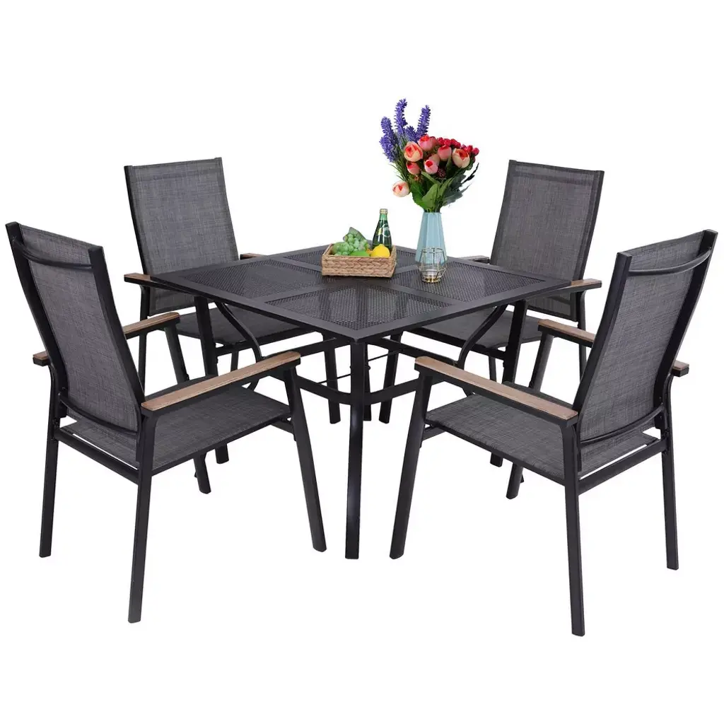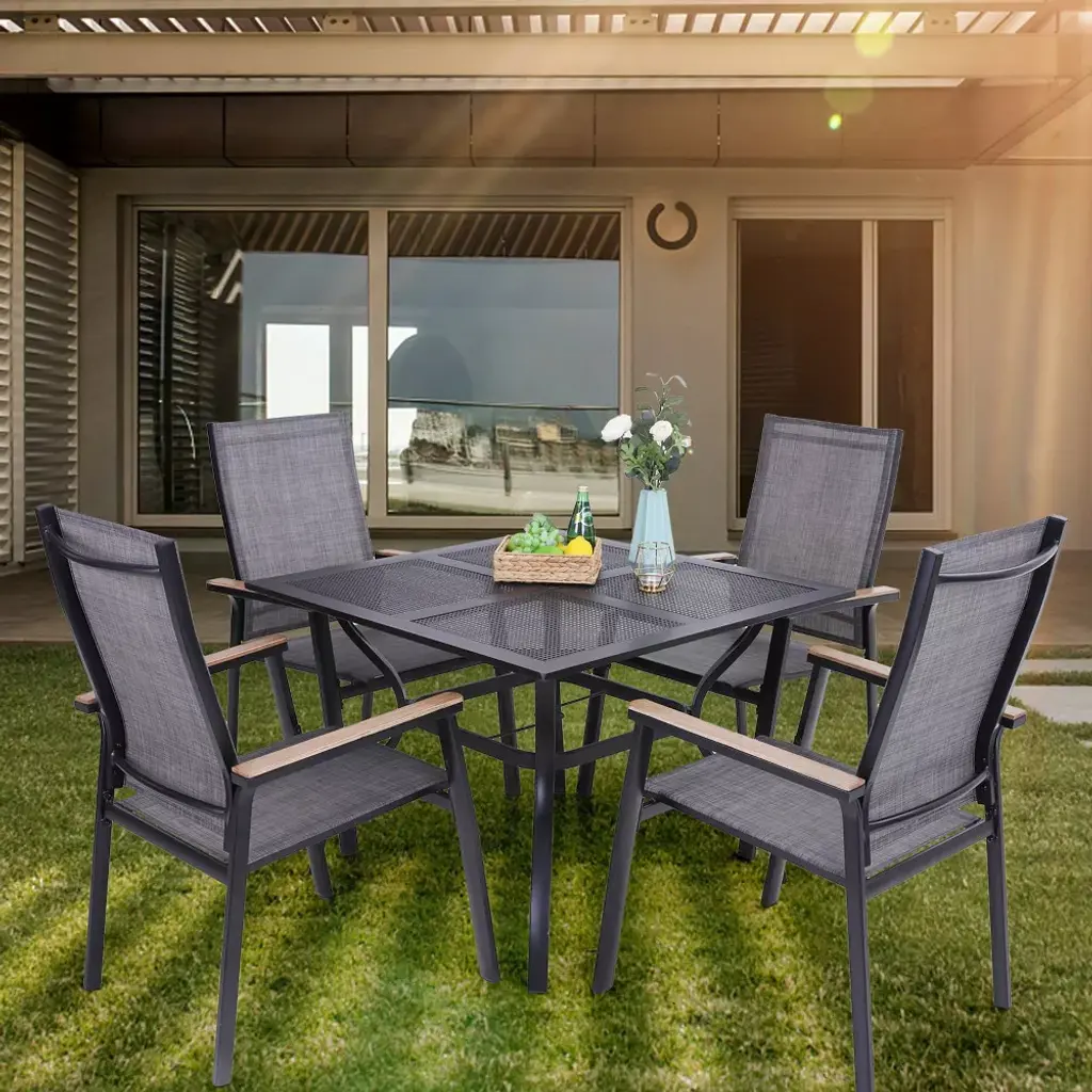5Pc Patio Dining Set With Mesh Square Table & Aluminum Frame Sling Chairs - Captiva Designs: Outdoor Furniture Ensemble