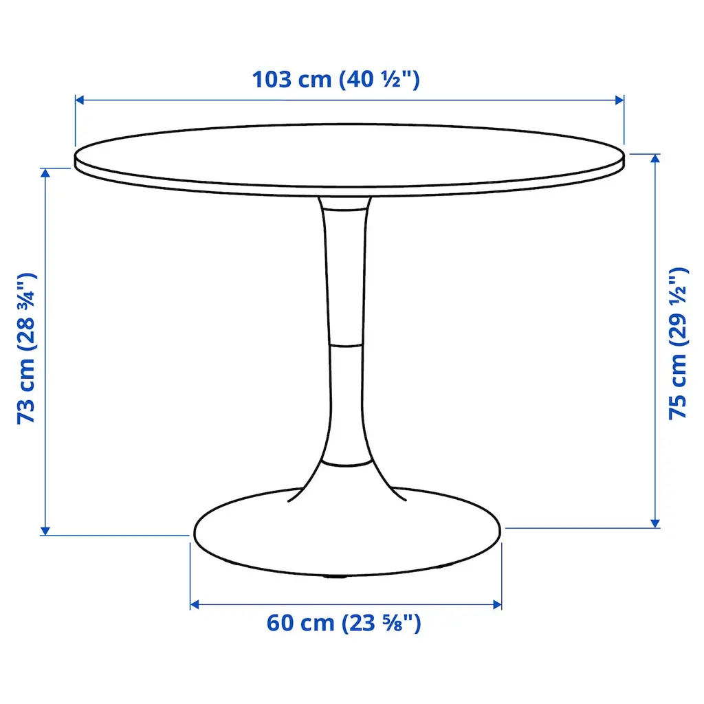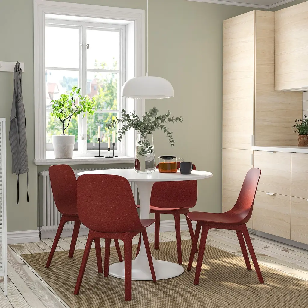DOCKSTA / ODGER Table and 4 chairs - white/red 40 1/2 ". A round table with soft edges gives a relaxed impression in a room. Have a seat and stay a while - the friendly, embracing curves and flexy material make this chair nice and comfy. Recommended for indoor use only.