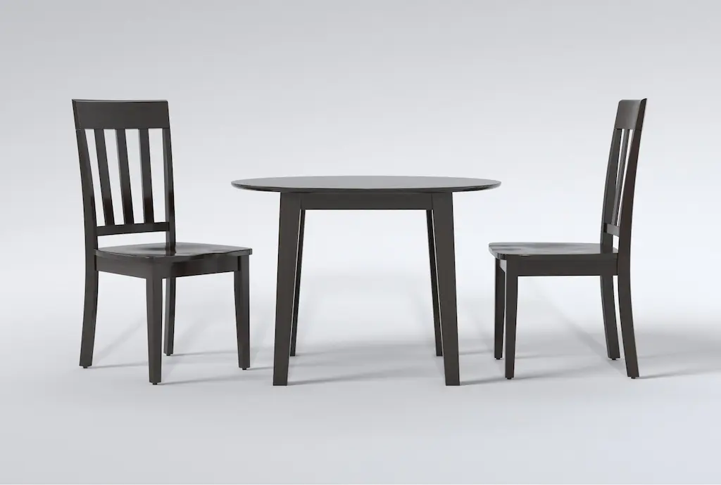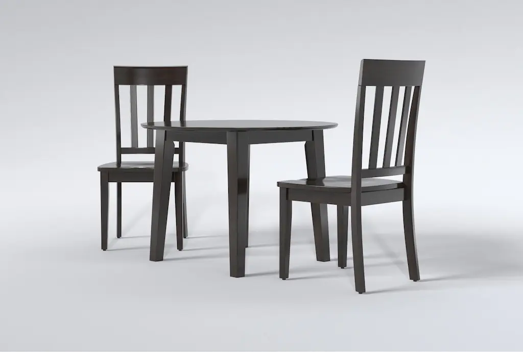 Bring a touch of contemporary elegance to your dining room with the Kendall Espresso Drop Leaf Dining Set, perfect for a party of two. Crafted from high-quality wood, this 3-piece set features slat back chairs that are both stylish and comfortable, making it the ideal choice for intimate dinners or casual brunches.