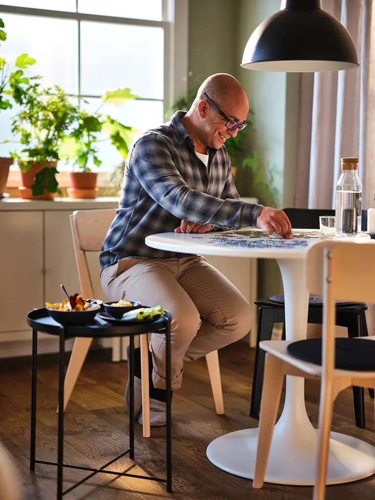DOCKSTA Table - white/white 40 1/2 ". A round table with soft edges gives a relaxed impression in a room. Seats 4. Product is possible to recycle or use for energy recovery, if available in your community.