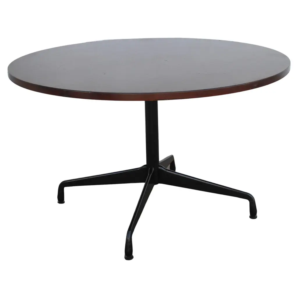 The versatile Eames Table (1964) is a durable, simple, sleek solution for residential and commercial settings. It features a sturdy streamlined base with plenty of legroom and leveling floor glides for uneven surfaces. Depending on selected options, the table is constructed of varying percentages of recycled and recyclable materials. This is an authentic Eames Table by Herman Miller. Greenguard Certified. Simple assembly required.