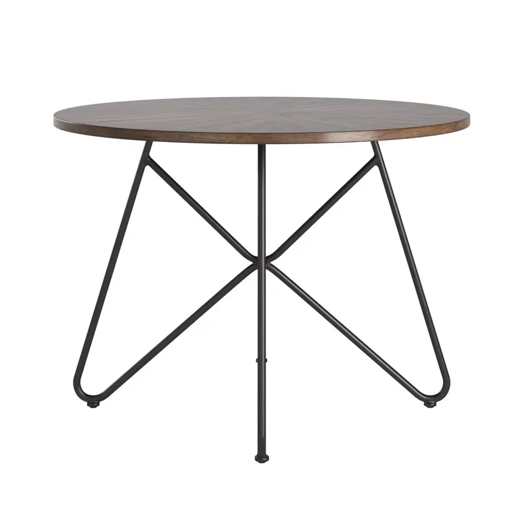 Inspire Q 42" Leonard Round Dining Table With Black Iron Legs Walnut Finish: Modern Style, Seats 4, Mdf Top