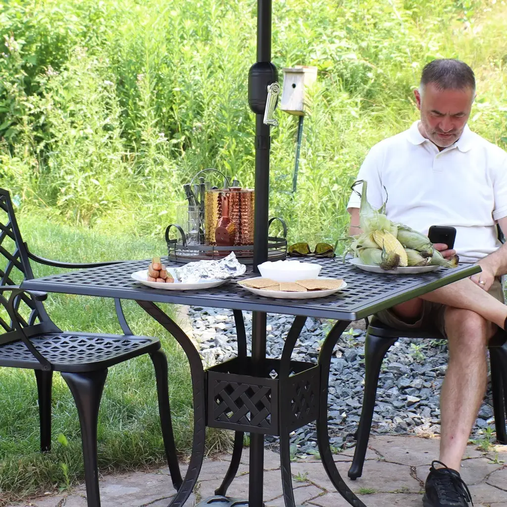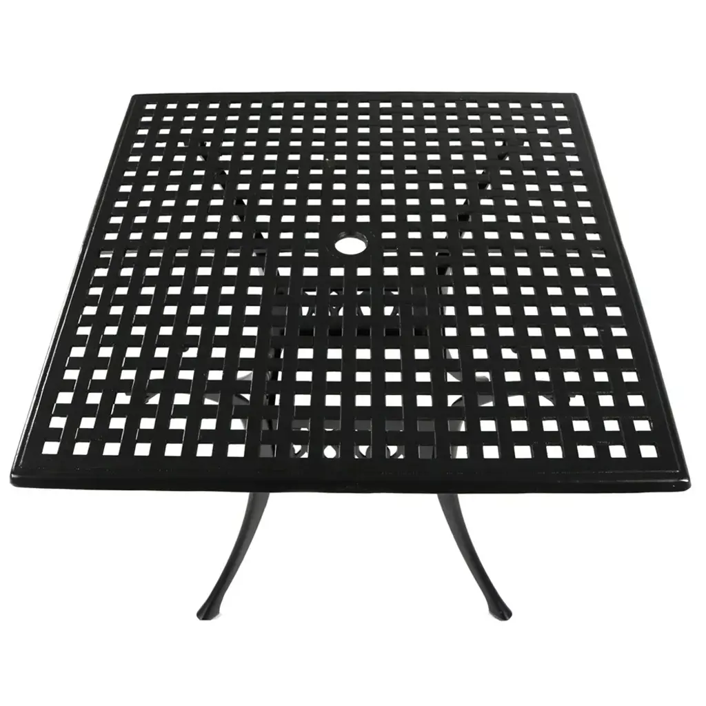 Sunnydaze Square Cast Aluminum Outdoor Patio Dining Table With Umbrella Hole, Black