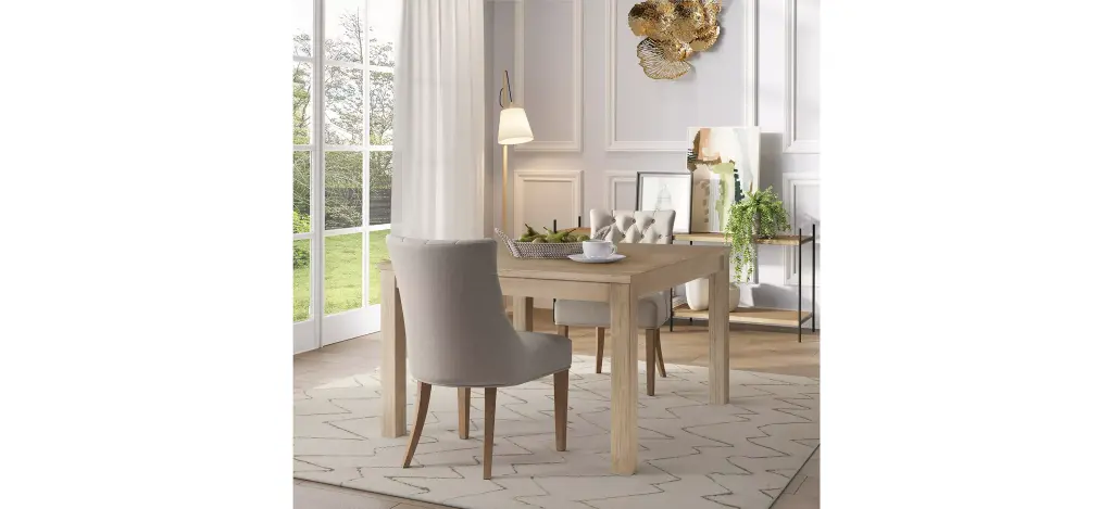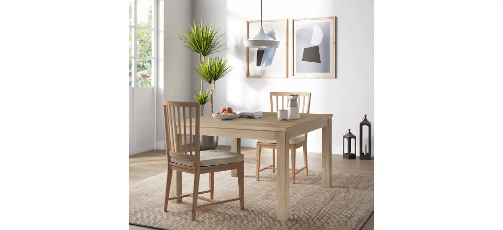 Modern Minimalist Dining Table for the Small-Space! The Tiburon Square Dining Table is refreshed in a light wood tone that strikes a balance between cozy simplicity and Japandi aesthetics. Designed to work with modern to transitional decor and could work as an office table.