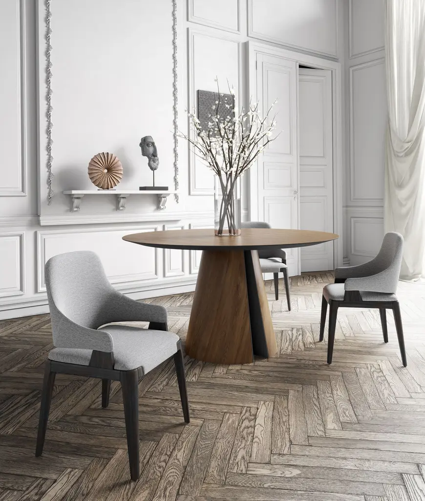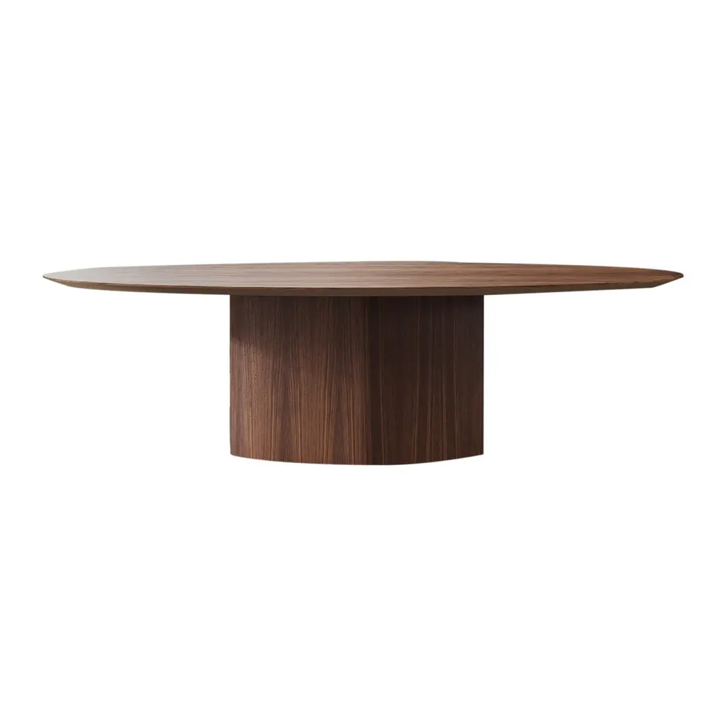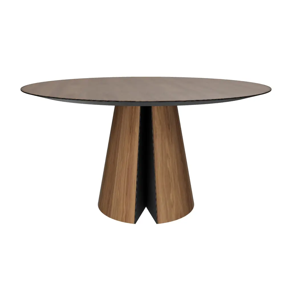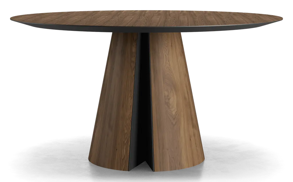 The Tottenham elegantly brings two-tone sophistication to the table. With an ultrathin wood top and circular aesthetics, the Tottenham is as visually pleasing above and below the surface. Underneath, the conical base cleverly utilizes two cutouts inlaid with natural wood veneers to beautifully juxtapose its high gloss lacquered exterior. Seats 6-8 comfortably.