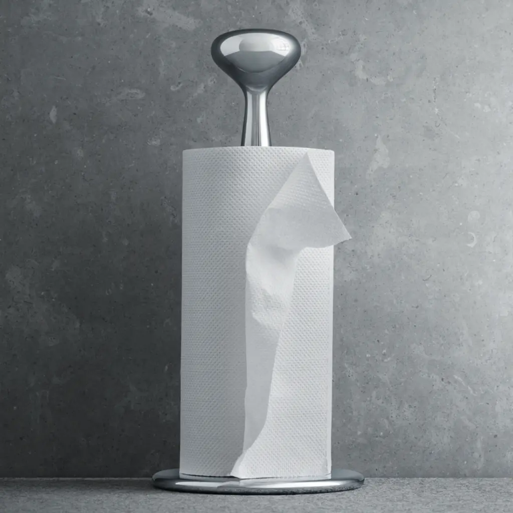 Elevate the everyday with the Alfredo kitchen roll holder. This modern, ergonomically designed paper towel holder takes a mundane object and gives it a quirky sense of style proving that functional need never be boring. Alfredo Häberli takes joy in breathing life and humour into everyday objects. His Alfredo collection for Georg Jensen casts products such as vases, salt and pepper shakers and candleholders as characters that live alongside you in your home. The kitchen roll holder is made from mirror-polished stainless steel that makes it both beautiful to look at and easy to clean.
