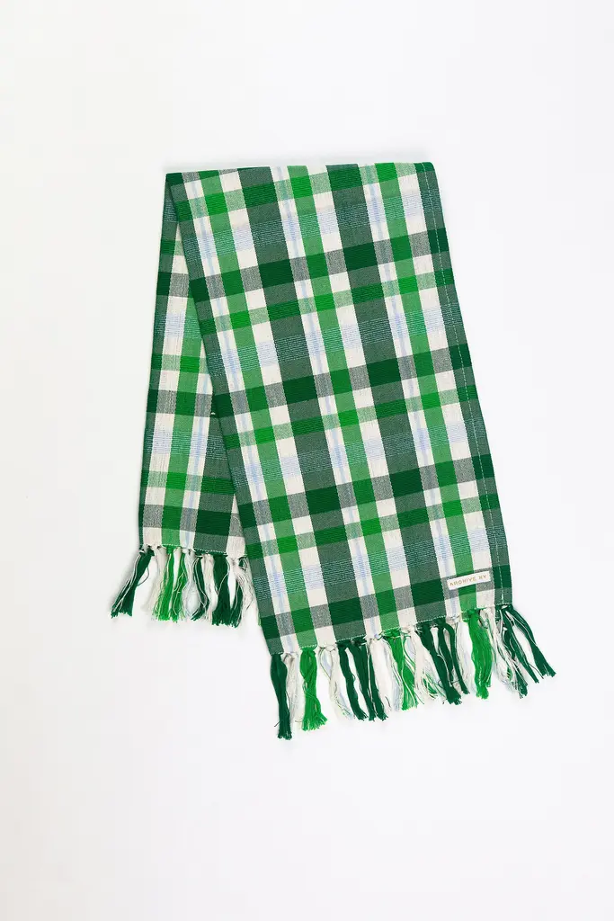 The Josefina plaid towel will be a lively addition of color and texture to your kitchen or bathroom. A stripes of evergreen, grass green and baby blue accents are woven together to create this both seasonal and timeless piece. Ethically handwoven by artisans in Xela, Guatemala. Archive New York is a line of handwoven, artisan made home decor products, founded in 2014 in Brooklyn, NY. The founder, Amira Marion, grew up in a home filled with Guatemalan textiles gathered by her parents in the 1970s. Her own designs emphasize a deep connection with Central American artisans, a commitment to Fair Trade practices, and the honoring of Maya culture, heritage and technique. Handwoven cotton Machine wash cold, tumble dry low Imported Dimensions 17” x 26”