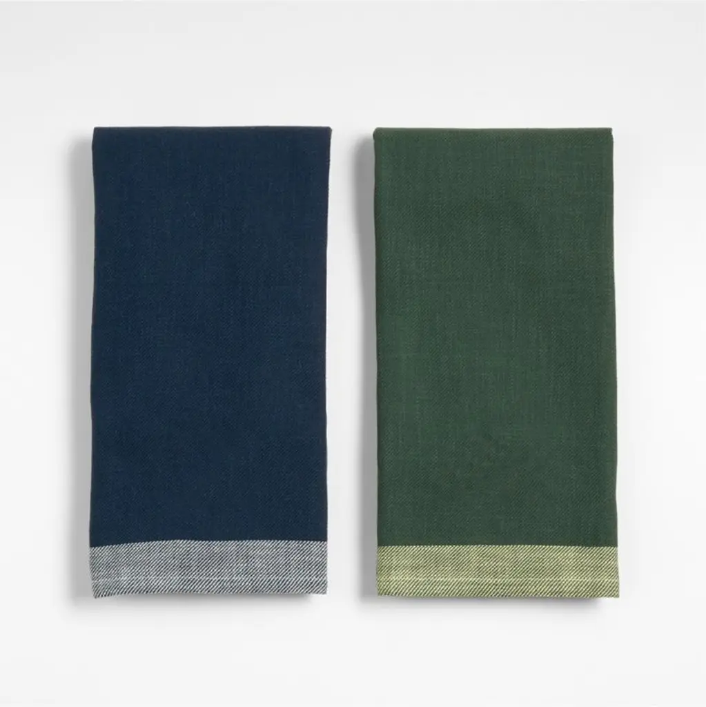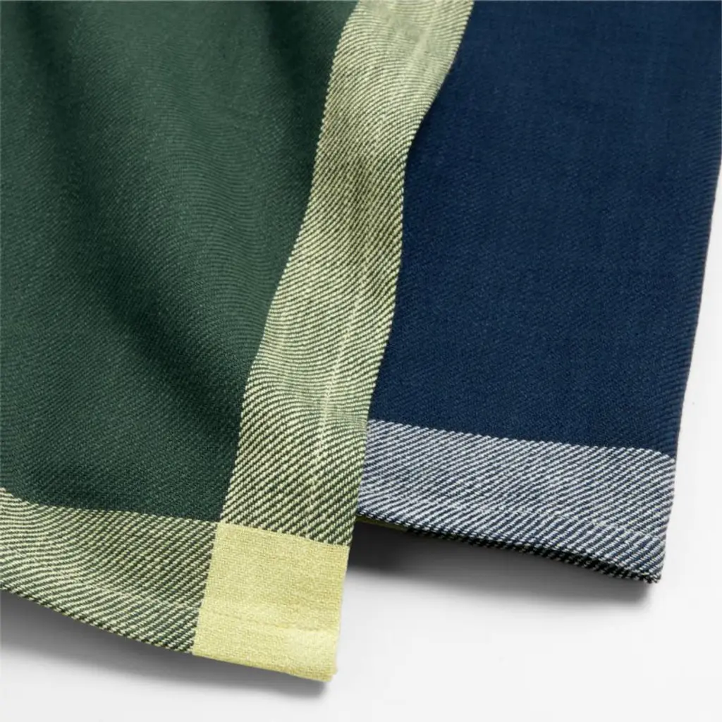 A change in color of the warp and weft border these solid dish towels with tonal interest and a pop of pure contrast in the corners. Woven of yarn-dyed organic cotton, the towels come in deep kombu green with yellow accents and indigo blue with light blue.Our collaboration with Daniel Humm, chef-owner of Eleven Madison Park and Clemente Bar in New York City, is a celebration of simplicity, beauty and function for the table and beyond.