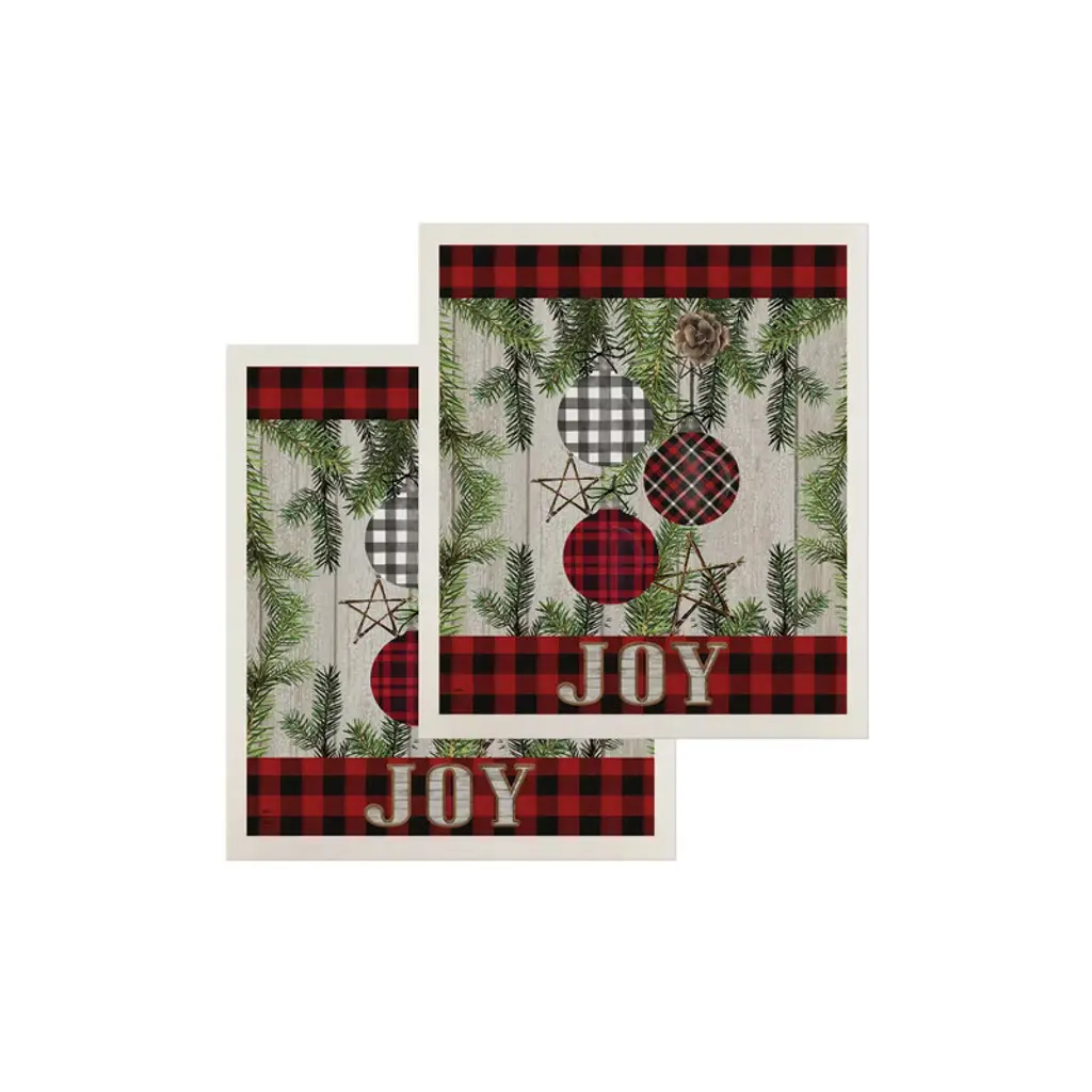 Featuring festive words like 'cheer', 'joy' and 'merry Christmas' along with the wonderful plaid pattern design, the Christmas cheer kitchen towel can make a wonderful addition to the Christmas collection. Ideal for kitchen space use, this towel set has red and white colored plaid pattern drawn over it. Sold on a per piece basis. Design: Christmas cheer kitchen towel Material: Cotton Dimensions: 18L x 28W x 1H (Dimensions are listed in length x width x height format in inches) Use: Perfect for use in kitchen spaces. Care Tip: Clean with an easy wash care.
