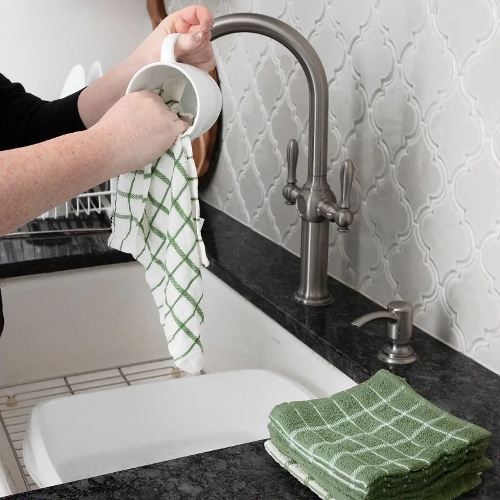 Elevate your kitchen experience with the RITZ Dishcloth Collection a must-have addition to your home. Crafted from 100% cotton these dishcloths combine softness strength and superior absorbency to handle everything from light spills to heavy-duty cleaning tasks. The set includes six 12" x 12" (30 cm x 30 cm) terry check dishcloths offering a perfect balance of style and functionality for your everyday needs.Designed to be versatile these dishcloths are ideal for drying dishes wiping down counters mopping up spills and so much more. Their vibrant colors and classic design add a touch of charm to any kitchen decor while their practicality extends beyond the kitchen. Use them to freshen up your bathroom or enhance your home decor--they're as stylish as they are functional.When it's time to clean them simply toss these dishcloths in the washing machine for hassle-free care. They're durable enough to withstand frequent washing while maintaining their softness and vibrant appearance.Whether you're a home chef a busy parent or someone who values both style and utility the RITZ Dishcloth Collection is the ultimate kitchen companion. Bring a splash of color and reliability to your cleaning routine with these indispensable household essentials.