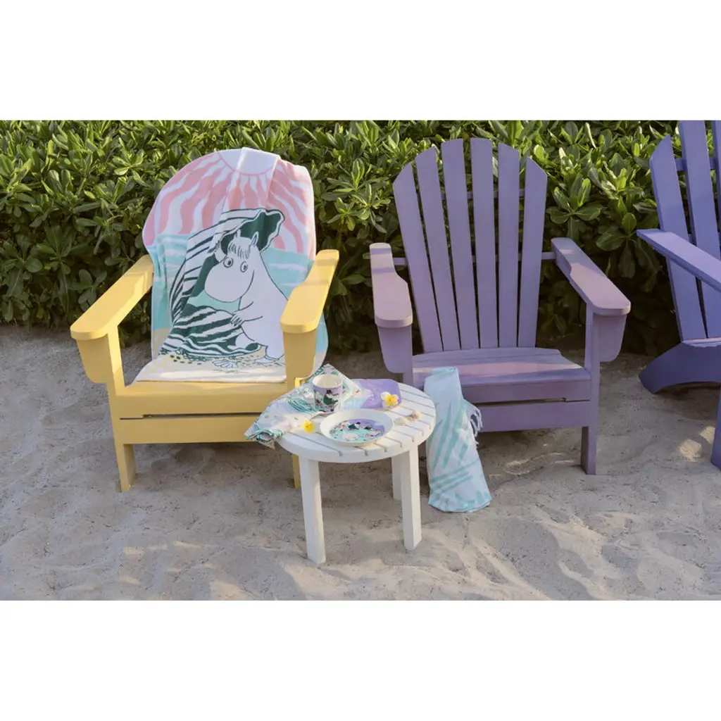 Moomin Arabia's Beach Day kitchen towel features the beloved Moominvalley characters, each enjoying a lively day at the beach in their own way. Behind them, swirling patterns of waves and sand bring a soft, retro-inspired charm to the scene. The fresh illustration by Parvati Pillai, in shades of green, violet and pink, is based on Fuddler's Courtship, a 1959 comic strip by Tove and Lars Jansson. Made from GOTS-certified organic cotton, this summery Moomin kitchen towel adds a cheerful touch to any kitchen – whether at home or at the summer cottage.