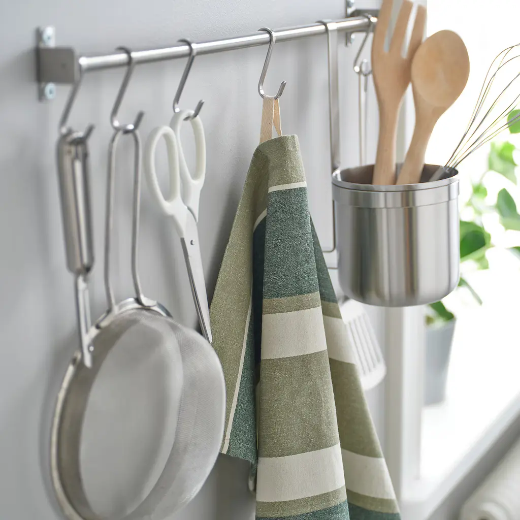 SANDVIVA Dish towel - green/white 18x24 ". Made from cotton and jute, a material mix that is highly absorbent and makes the towels efficient to use in the kitchen.