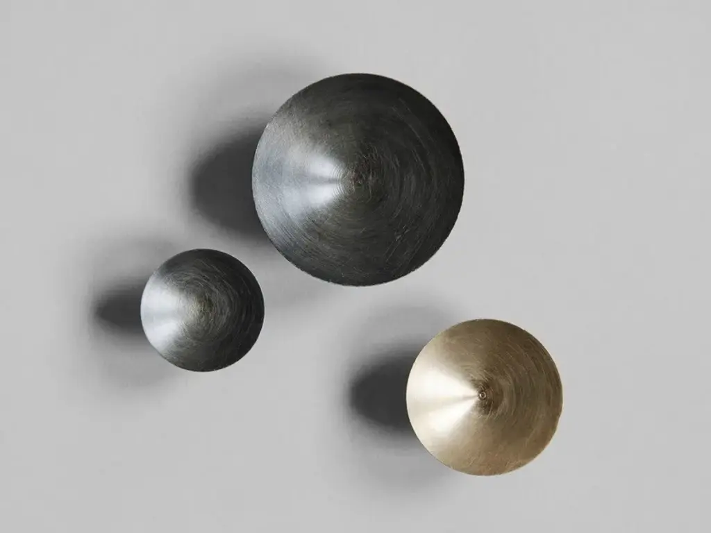 Inspired by musical instruments the Hi-Hat knobs are playfully inspired by the cymbal and adds a frisky touch to the home. The spun solid brass gives the knobs a beautiful patina over time and becomes more beautiful with use. All knobs are sold in set of two.