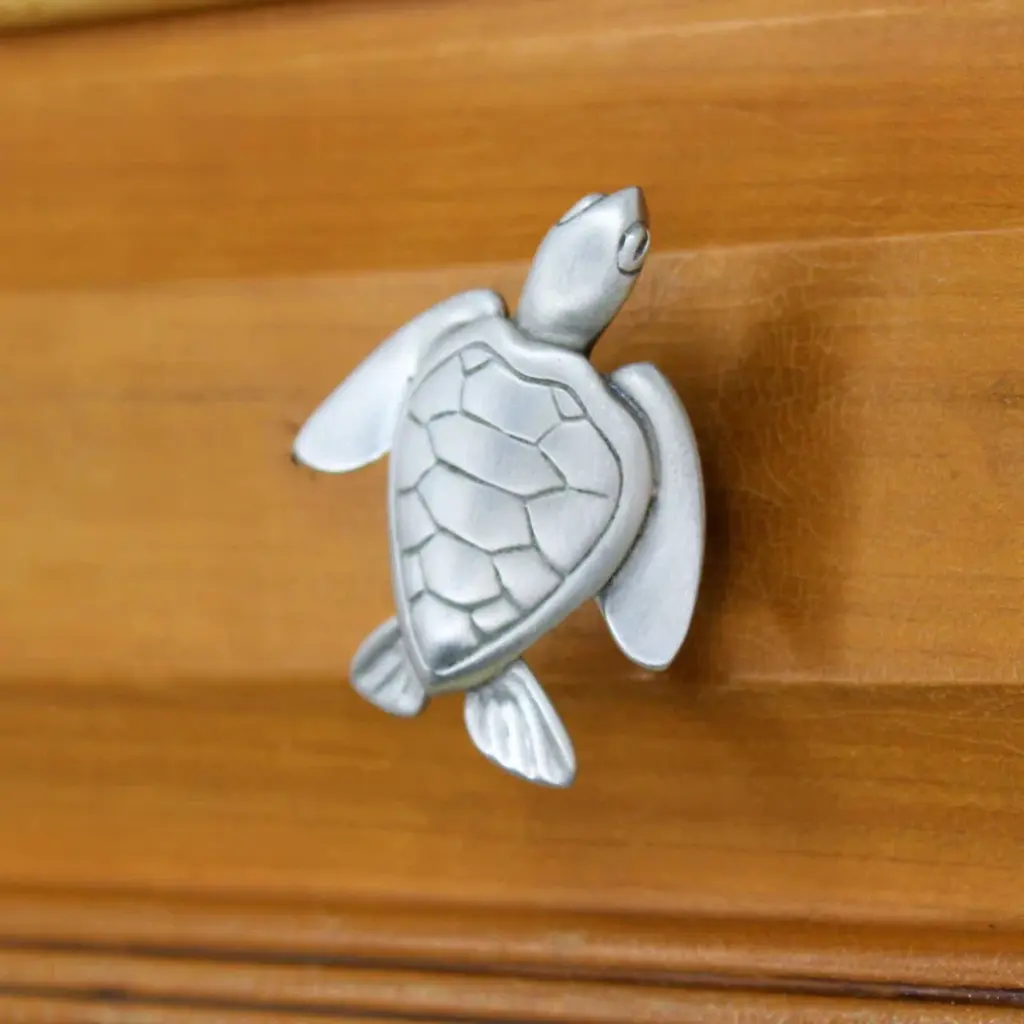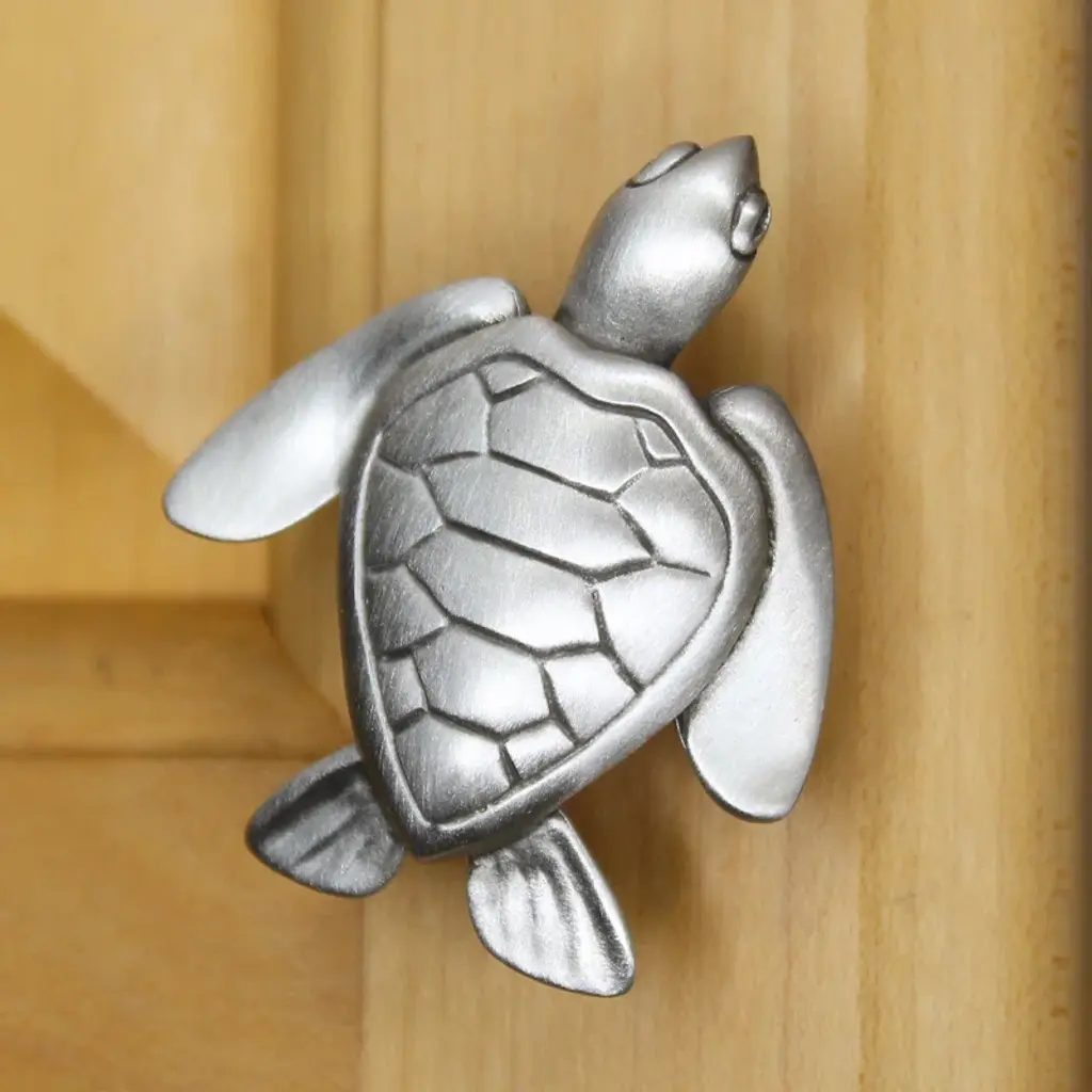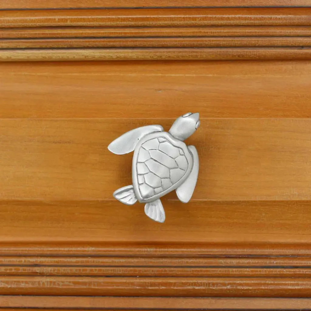 Coordinated designer knob by marine life artist Peter Costello. Loggerhead sea turtle cabinet knobs, beloved sea creatures, will add whimsy and fun to your beach-themed kitchen or bathroom.