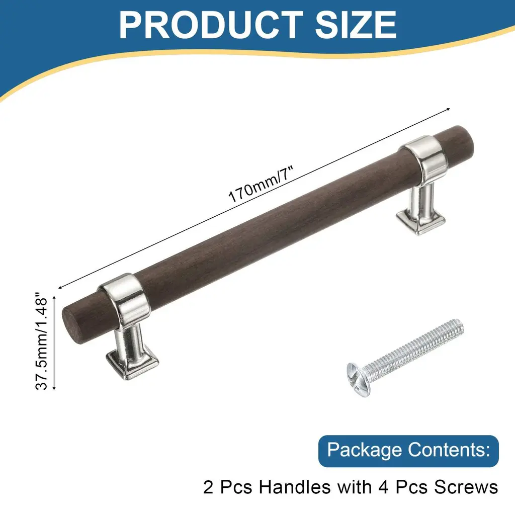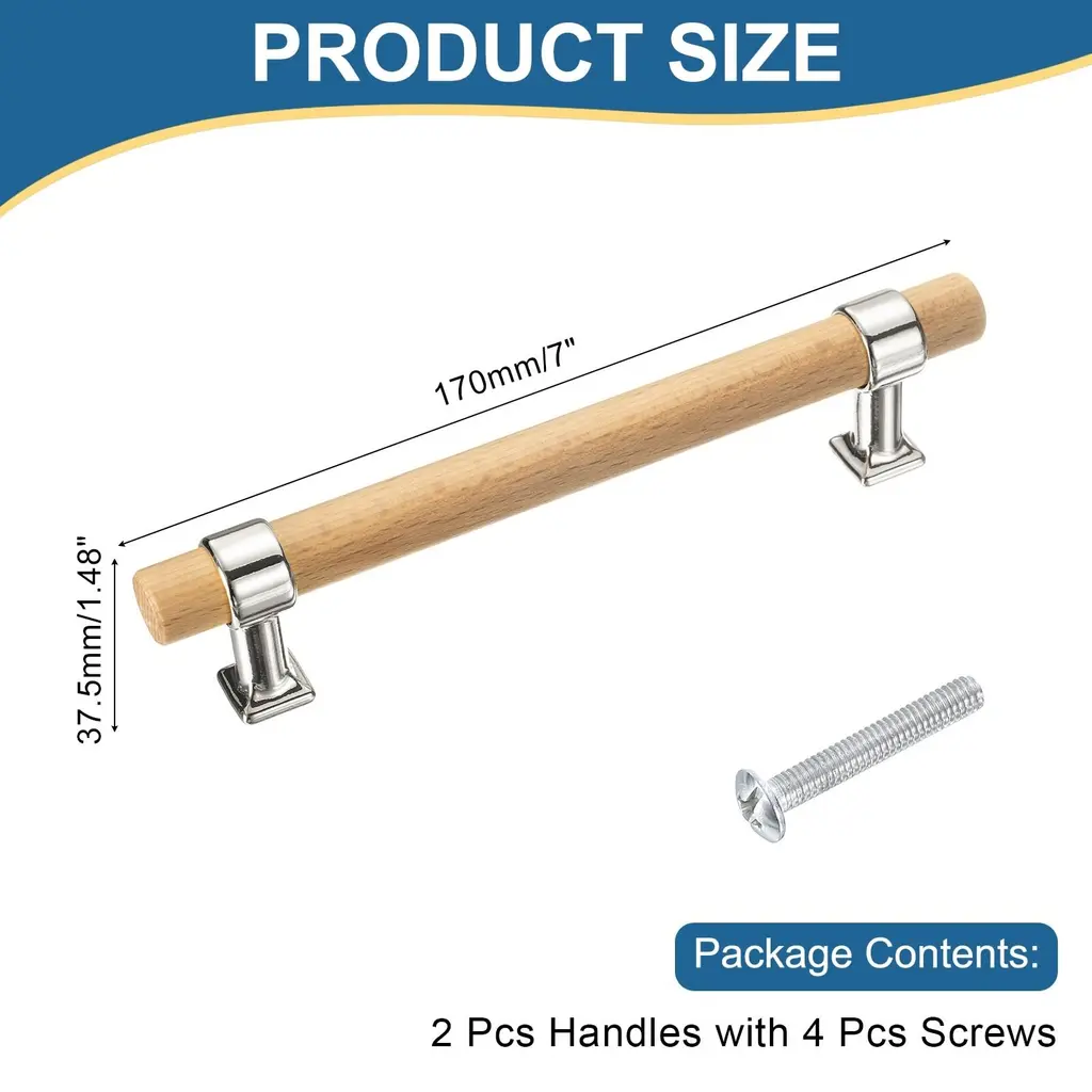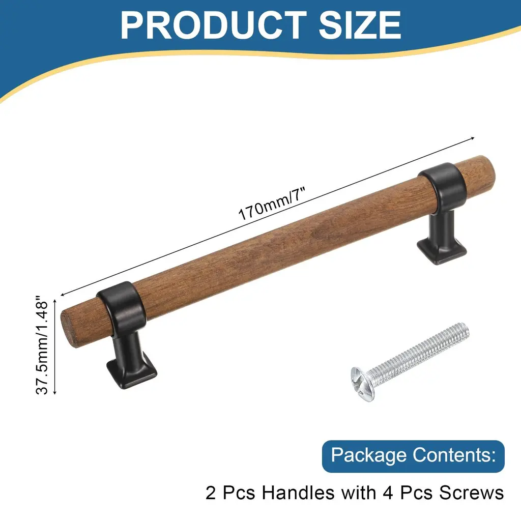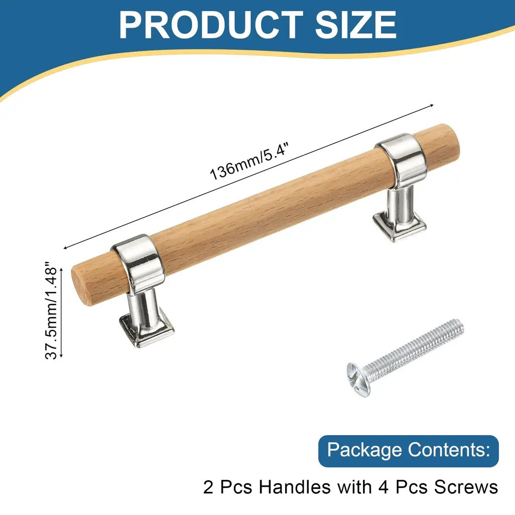 Description:Durable Wood and Metal: The double-hole drawer pulls are crafted from a combination of wood handle and zinc alloy base, combining the warmth of natural wood with the sophistication of metal, providing an elegant and sophisticated appearance.Adjustable and Stylish Design: The simple and modern T-bar design offers a classic and timeless look, and the adjustable nature of pulls allows them to fit different-size drawers, making them versatile for various furniture types and styles.Easy Installation: Align the holes on the pull with the pre-drilled holes on the drawer or closet and secure the pull with the provided screws, ensuring a tight fit to prevent wobbling.Versatile Use: The drawer pulls and knobs are great for home, kitchen, hotels, living rooms, bedrooms, and closet spaces on dressers, wardrobes, cupboards, and more, adding a touch of elegance to your furniture.Specification:Material: Wood, Zinc AlloyColor: GoldTotal Size: 136 x 17.5 x 37.5 mm/5.4 x 0.69 x 1.48 inches (L*W)Hole Spacing: 96mm/3.8"Package Contents:2 pcs x Drawer Pulls4 pcs x Screws