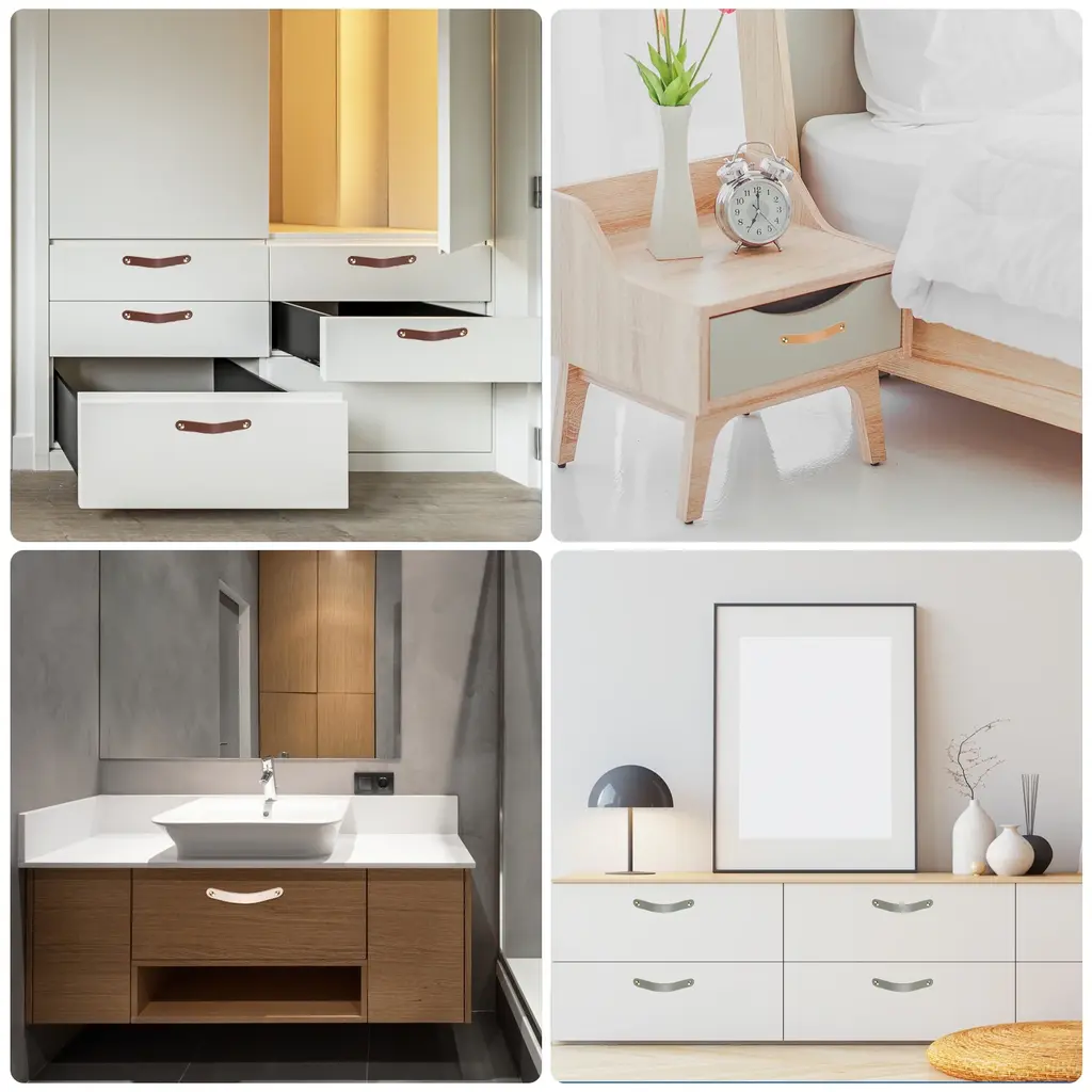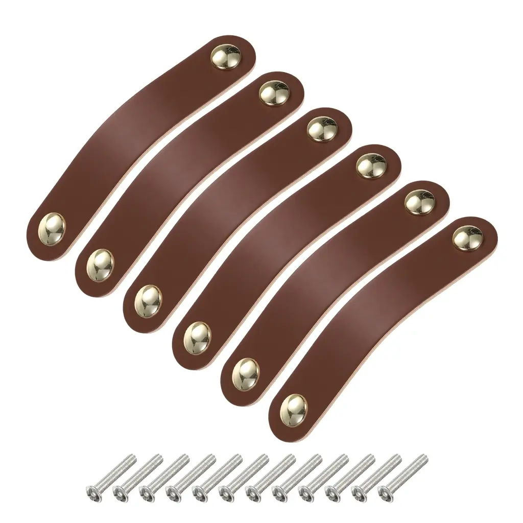 Description:1. The leather dresser handles are made of leather material, which is soft and lightweight, strong and durable, not easy to tear or break, and has a long service time without fading. The zinc alloy knobs are treated by polishing on the surface for good corrosion and rust resistance.2. These drawer knobs serve as both functional and decorative elements, comfortable to touch and grip, retro color, elegant and sophisticated, suitable for most furniture decoration styles, and make your home look more attractive.3. Mark the desired location, then install the drawer pulls by attaching them to the designated holes on your furniture using the screws provided in the package, and then tighten them to ensure a secure fit to ensure proper functionality.4. The leather dresser pulls are versatile and adaptable, these leather drawer pulls are great for a variety of settings including dressers, wardrobes, drawers, cupboards, boxes, bookcases, closet, and more, enhancing the overall beauty of your living space as a good decoration.5. Prior to installation, please ensure that the screws are fastened securely to prevent any loosening over time.Specification:Material: Leather and Zinc AlloyColor: Brown/GoldTotal Size: 14 x 2.5 cm/5.5 x 1 inch (L*W)Hole Spacing: 96 mm/4 inchPackage Content:6pcs x Leather Drawer Pulls; 12pcs x Mounting Screws