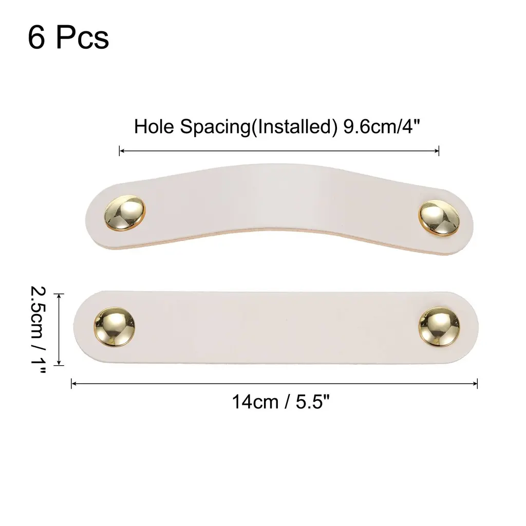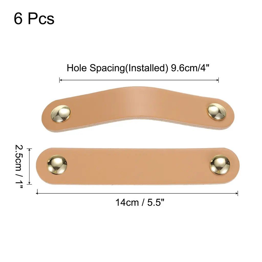 Description:1. The leather dresser handles are made of leather material, which is soft and lightweight, strong and durable, not easy to tear or break, and has a long service time without fading. The zinc alloy knobs are treated by polishing on the surface for good corrosion and rust resistance.2. These drawer knobs serve as both functional and decorative elements, comfortable to touch and grip, retro color, elegant and sophisticated, suitable for most furniture decoration styles, and make your home look more attractive.3. Mark the desired location, then install the drawer pulls by attaching them to the designated holes on your furniture using the screws provided in the package, and then tighten them to ensure a secure fit to ensure proper functionality.4. The leather dresser pulls are versatile and adaptable, these leather drawer pulls are great for a variety of settings including dressers, wardrobes, drawers, cupboards, boxes, bookcases, closet, and more, enhancing the overall beauty of your living space as a good decoration.5. Prior to installation, please ensure that the screws are fastened securely to prevent any loosening over time.Specification:Material: Leather and Zinc AlloyColor: Brown/GoldTotal Size: 14 x 2.5 cm/5.5 x 1 inch (L*W)Hole Spacing: 96 mm/4 inchPackage Content:6pcs x Leather Drawer Pulls; 12pcs x Mounting Screws