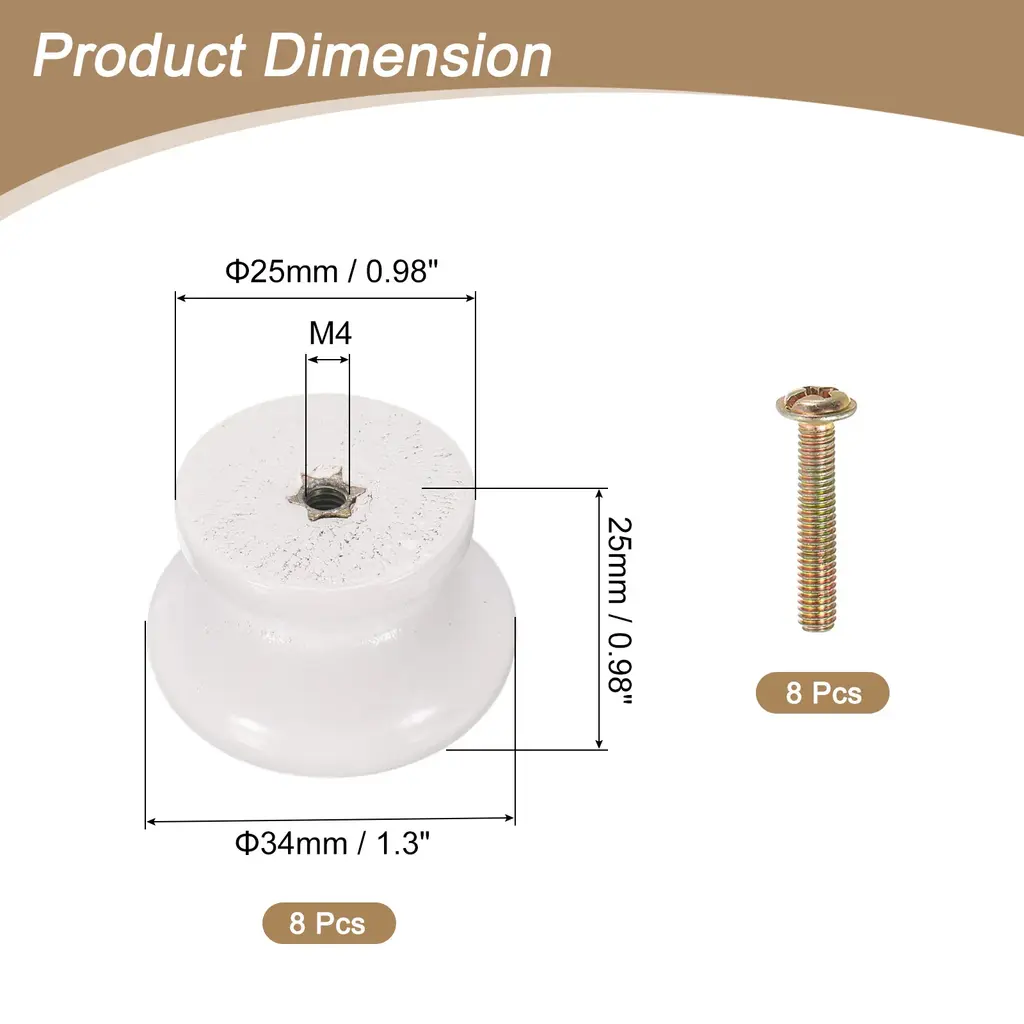 Description: Material - The wooden knob is made of wood, Featured with glossy spray paint, the round wood knobs are rustproof and durable. Practical Design - Featuring a mushroom shape, and a beautiful and simple design, the round wood dresser knobs are a replacement for various furniture pull. Application: Cabinet knobs can replace your old or broken pull knob and can be applied to bookcase drawers, cabinet drawers, closet drawers, dresser drawers, kitchen drawers, shoe cabinets, and other drawers. Note: Every wood knob is unique. Variations in color, texture, and grain pattern are normal. Specification Material: Wood Surface Treatment: Baking Varnish Diameter:23mm(0.9 inch)