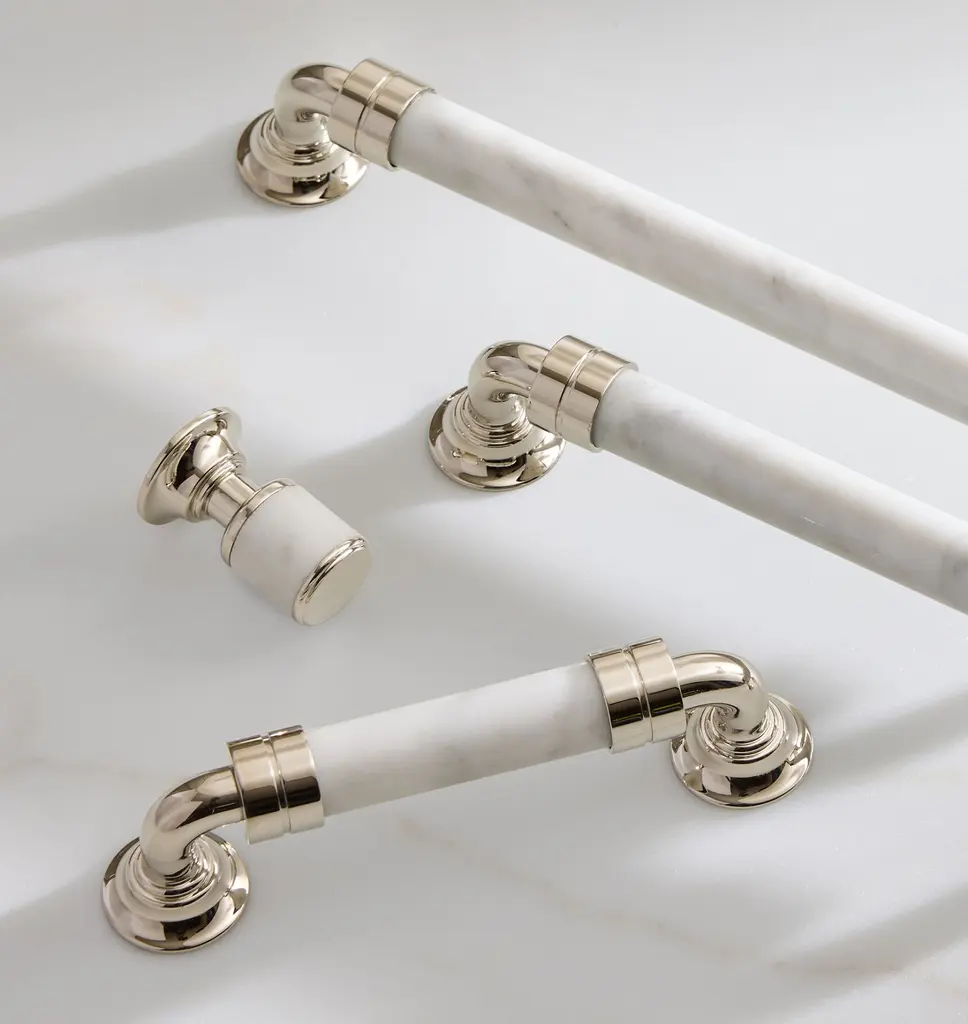 Asher's sleek silhouette features clean, fine lines and a beautiful marble handle—a contemporary take on vintage designs for a timeless look in your home.