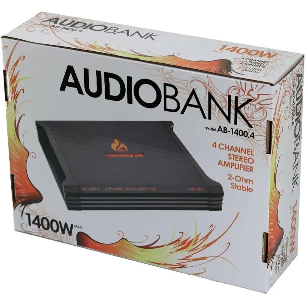 Audiobank Ab1400.4 4 Channel 1400 Watt 2 Ohm A/b Class Car Audio Stereo Speaker Amplifier With Bass Control, Bridgeable, Led Indicator With Bass Knob