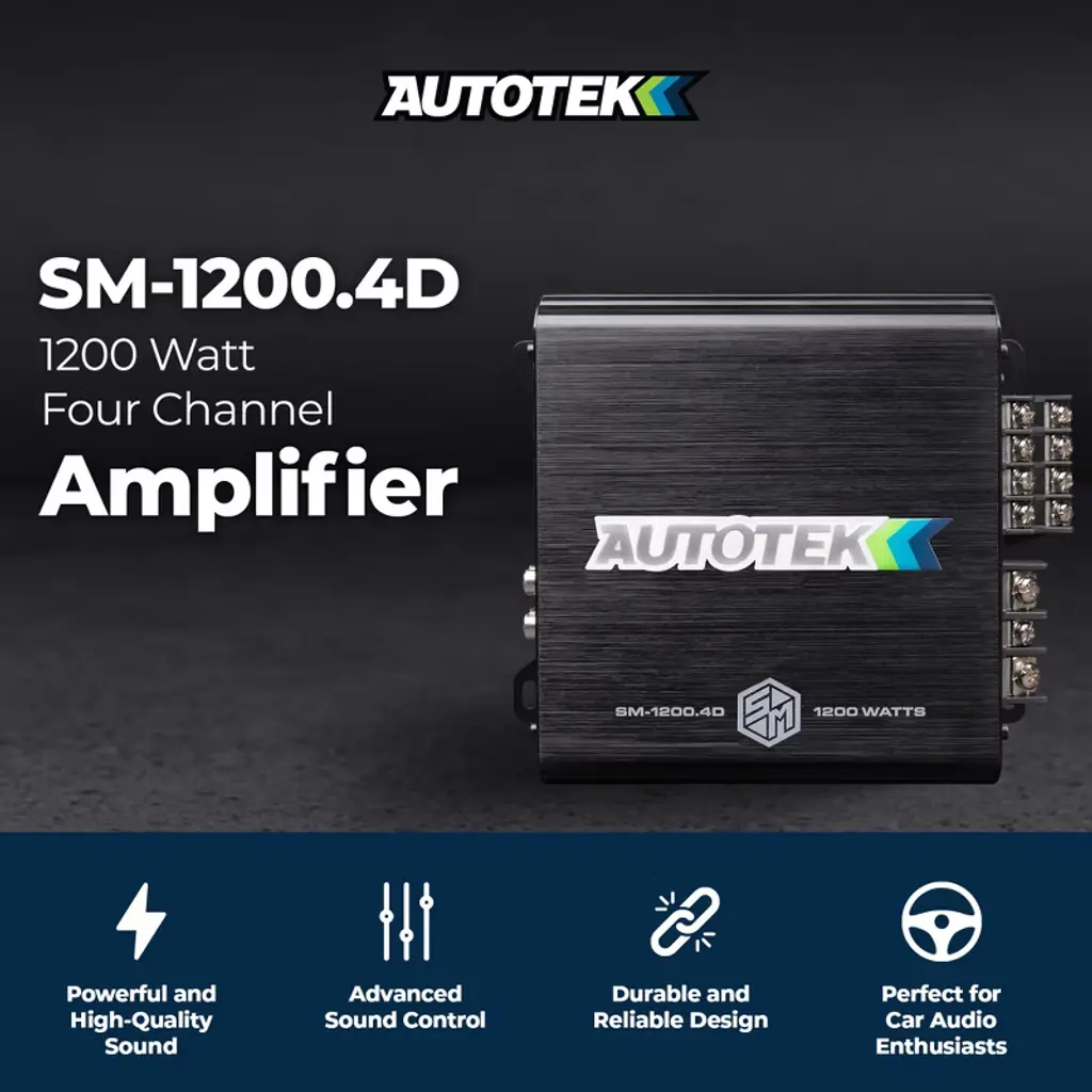Autotek 1200 Watt 4 Channel Car Audio Amplifier With Bass Knob, High Output Class D Mono Bridged 4 Ohm Stable Input, Street Machine, Sm-1200.4d, Black