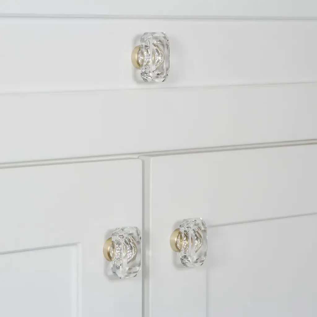 Elevate your space with the Baguette Clear Crystal Cabinet Knob. Its diamond-inspired design and elegant rectangular shape add sophistication to any cabinetry or furniture.