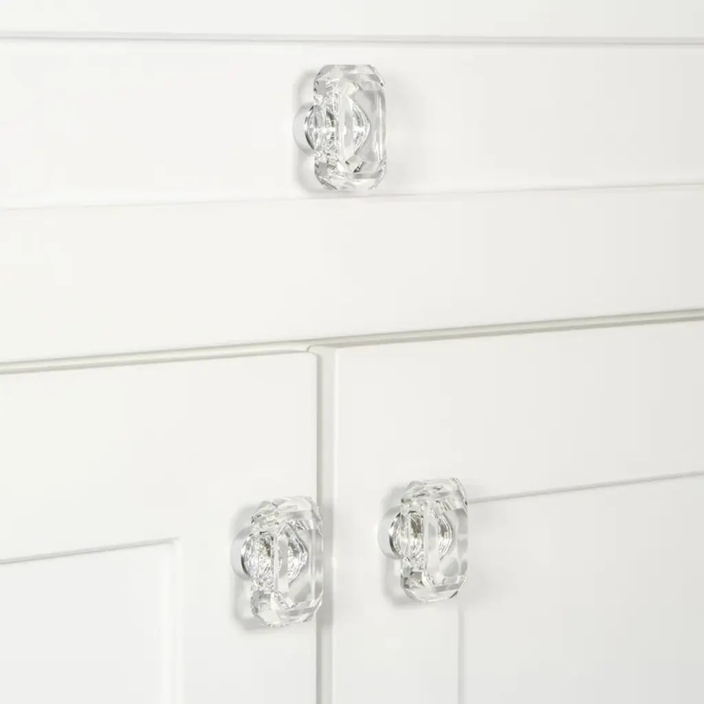 Elevate your space with the Baguette Clear Crystal Cabinet Knob. Its diamond-inspired design and elegant rectangular shape add sophistication to any cabinetry or furniture.