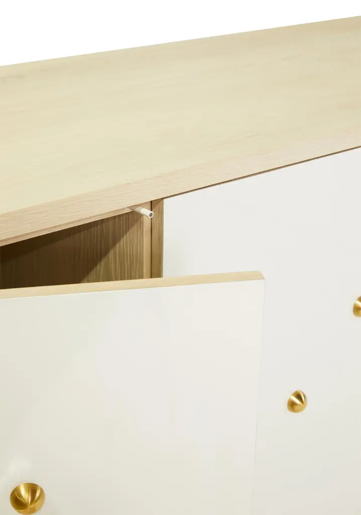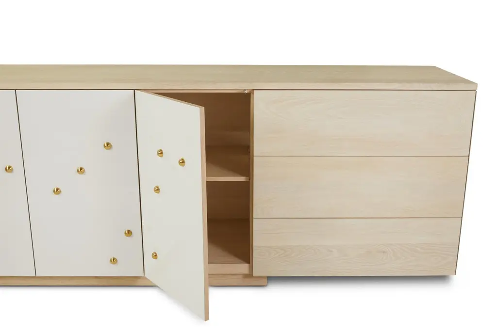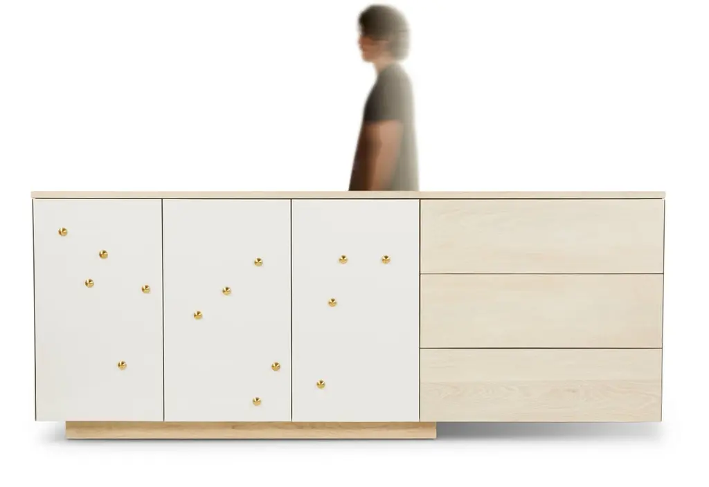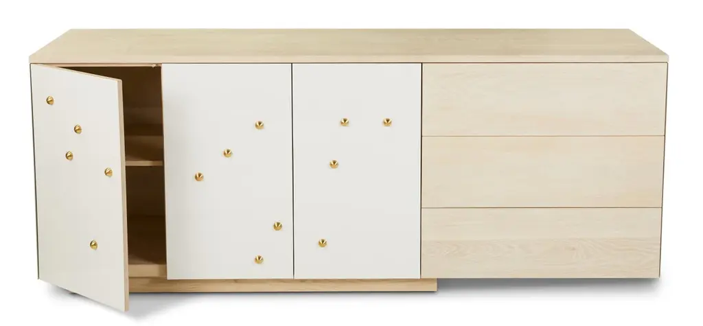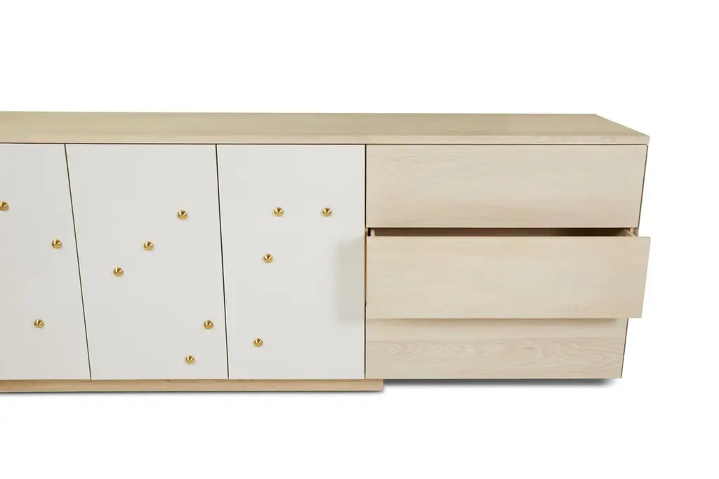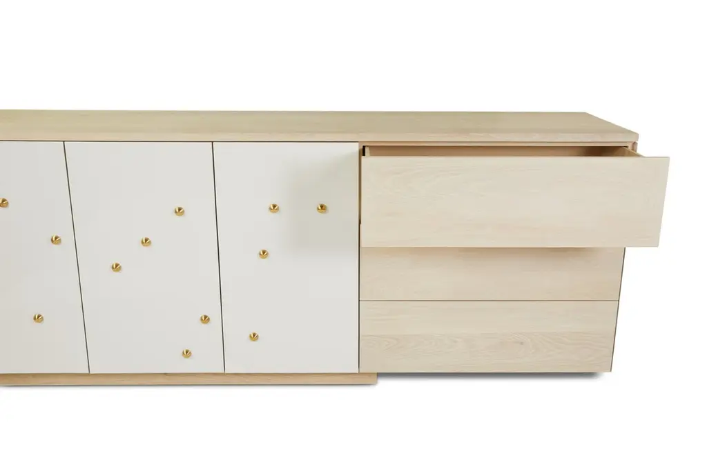 C-210wb Solid White Oak And Powder-Coated Cantilevered Credenza With Brass Knobs