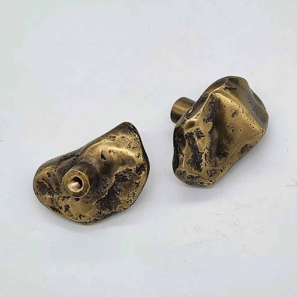 Cabinet Knob In Cast Brass : Organic Shape, Patinated Finish 5 X 3 Cm