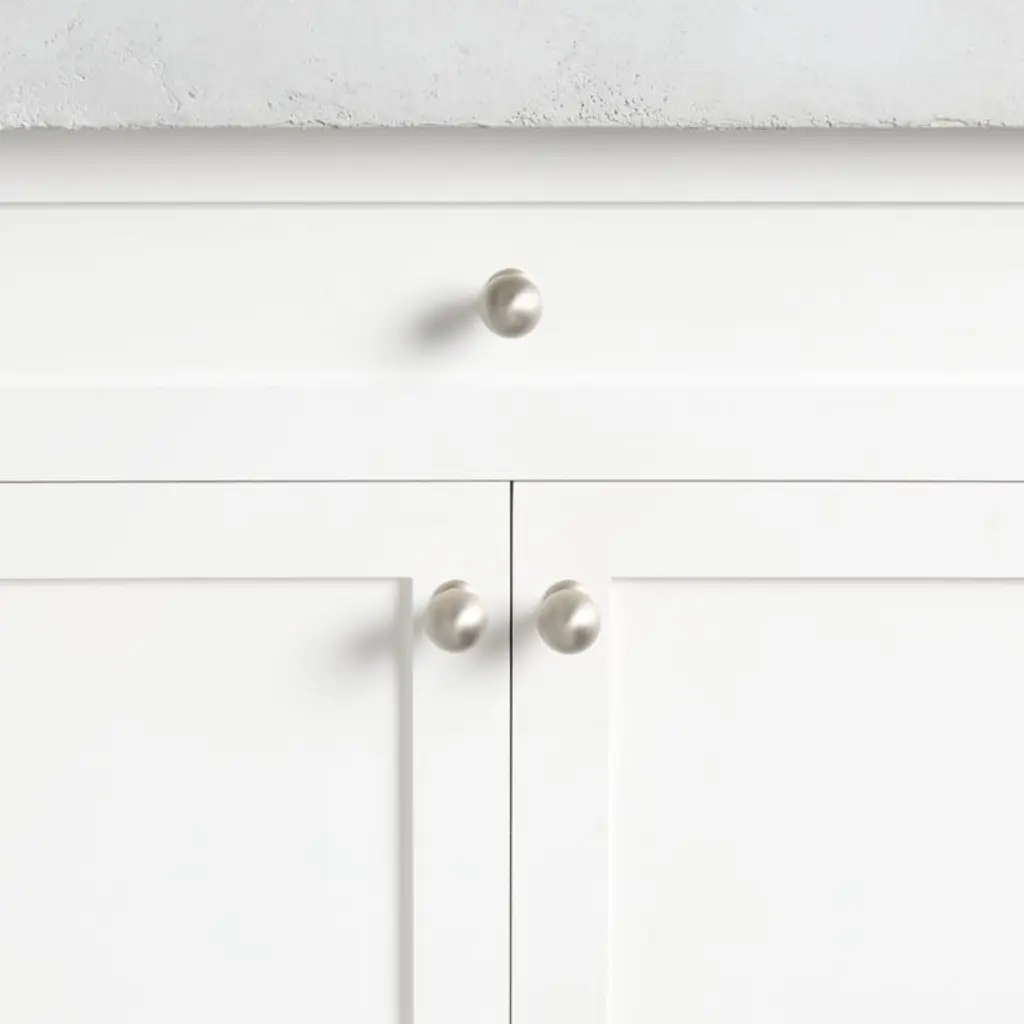 Sometimes it's the small things that pull a room together. That's why we've designed a hardware collection with modern silhouettes and a touch of tradition to give your bathroom that perfect finishing touch. We named this knob Classic for a reasona stepped rosette base supports a sphere for a timeless look. Crafted of brass with a brushed nickel finish, the knob is supersmooth for a comfortable grip. Hardware is included to make it easy to refresh the look of dresser drawers, cabinet doors and vanities.