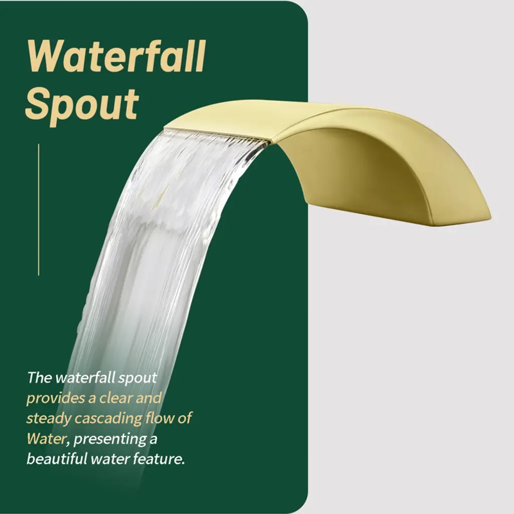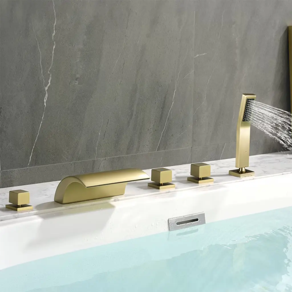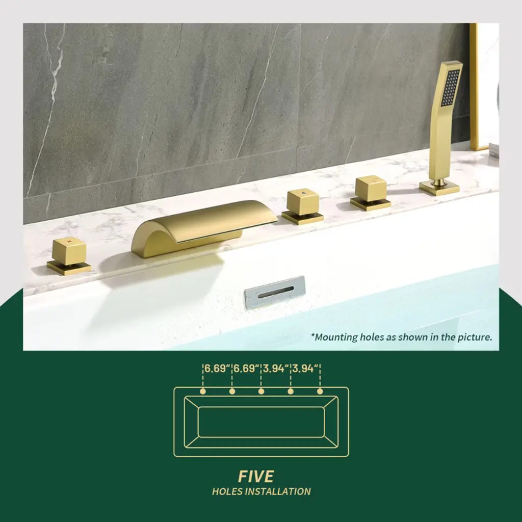 Cobbe 5-hole Installation Tub Faucet Kit With 7.09-inch Wide Waterfall Spout, Hand Shower, 2 Switches And 1 Diverter Knob Brushed Gold