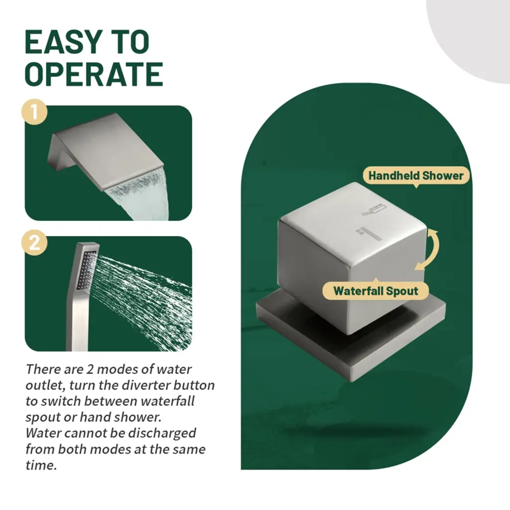 Cobbe Brushed Nickel 5-hole Installation Tub Faucet Kit -2 Switches, 1 Diverter Knob, 7.09-inch Wide Tub Spout, Handheld Showerhead
