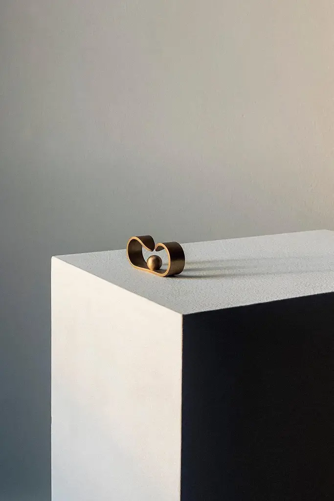 Door Handle or Knob 'Prim' by Spaces Within, Amber BrassDimensionsHeight: 61 mmWidth: 13 mmDepth: 25 mmWeight: 34 gA delightful piece with lots of character, PRIM expresses a clear signature of joy. The matte finish has a natural looking aged appearance in a warm amber tone. Ideal to enhance any wardrobe space or antique piece of furniture.The products may show small variations and imperfections due to the artisanal processing technique involved in making each of our pieces.Brass and Nickel finishes are intentionally natural and are therefore subject to a slight variation and opacification which gives them the beauty and patina of time.Only a moist fabric has to be used to clean the brass parts.JEWELRY FOR SPACESSPACES WITHIN is a Stockholm-based label, crafting sculptural cabinet hardware with sensual forms, textural finishes and unique proportions. The pieces we make explore themes of refinement, elegance and poetic expressions. Each SPACES WITHIN piece bears an aesthetic identity of its own, that can be used singularly or as part of a combination of hardware within a space. The collection as a whole allows for playful parings and rich combinations of materials and finishes, jewelry for spaces in every sense.We make our collection from solid brass, in a second-generation foundry in Florence that shares our passion for quality. Working closely with its artisans, each piece is developed slowly and with great care and love. Our intention is that this collective method of crafting leads to an energy and soul within each piece that you can sense with every touch.This is a label founded on the belief that beauty is a function in its own right – a healing frequency. And that visual poetry in functional objects draws you closer to your surroundings. The late Frank Lloyd Wright said 'Space is the breath of art.' What we do is sculpt the whispers within.- Nadja & Karin