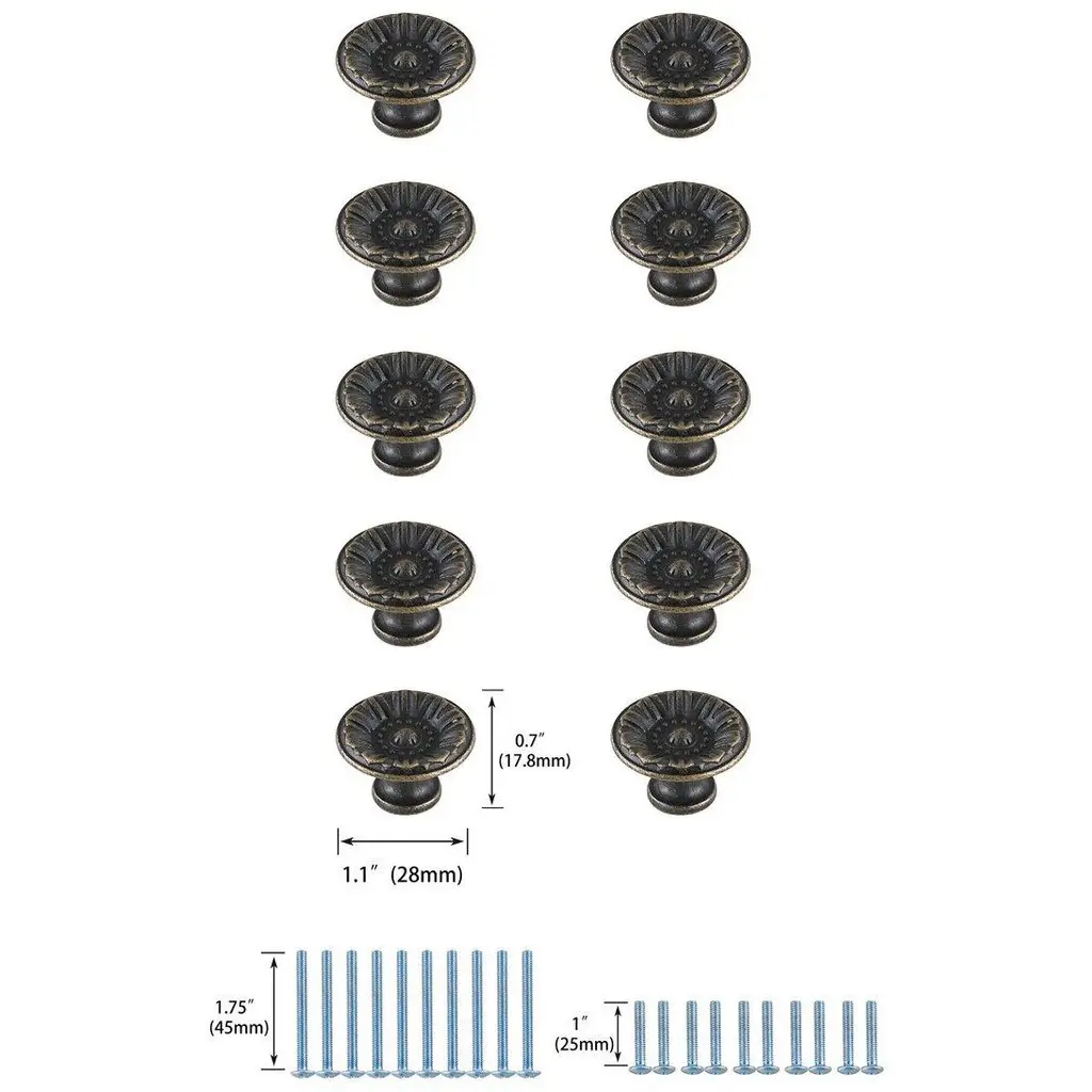 Corio Antique Bronze Hardware Cabinet Knob, Set Of 10