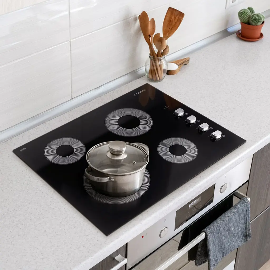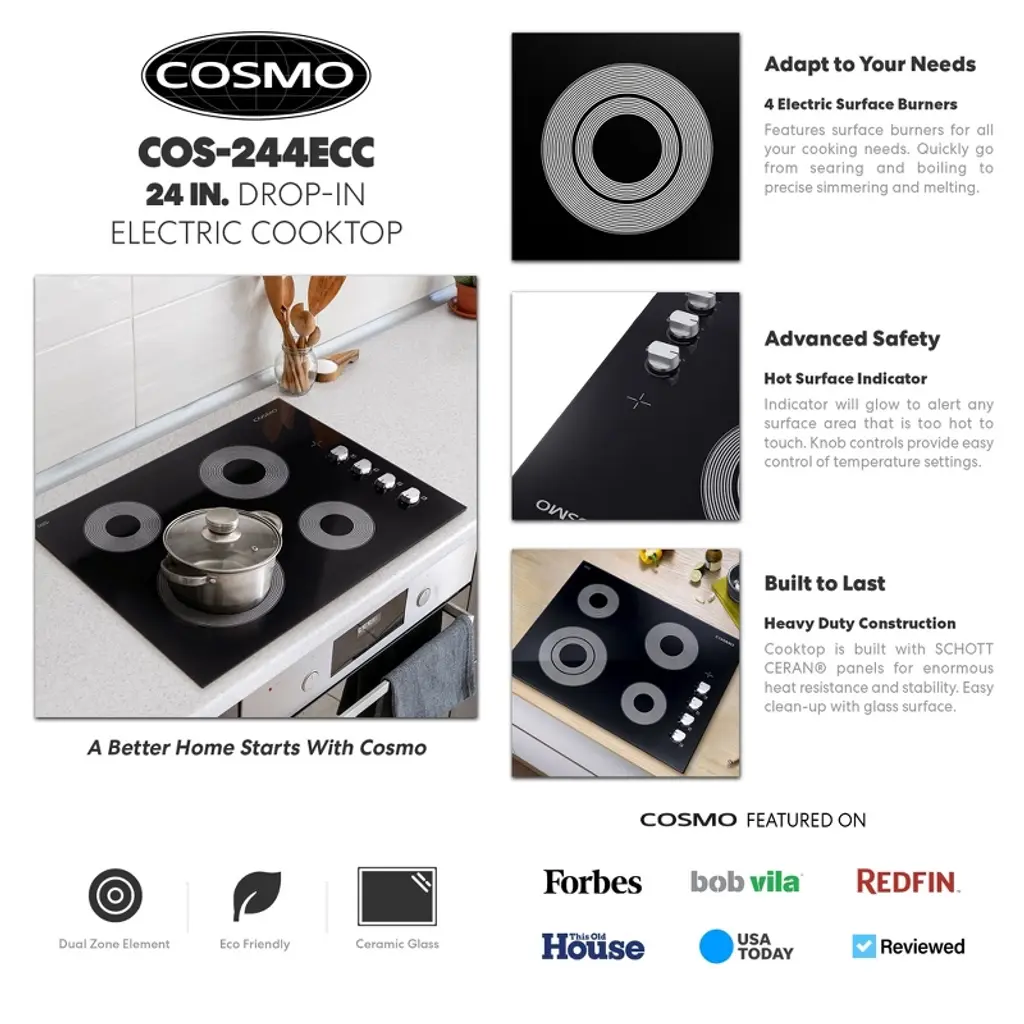 Cosmo Cos-244ecc 24 In. Electric Ceramic Glass Cooktop With 4 Elements, Dual Zone Element, Hot Surface Indicator Light And Control Knobs