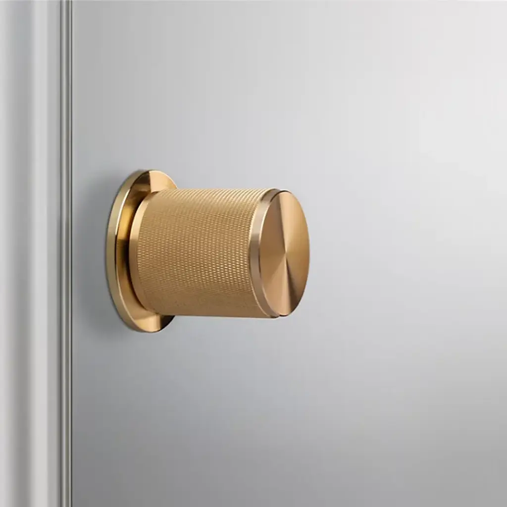 Provide calculated, artistic functionality to interiors with the Cross Conventional Passage Door Knob from Buster + Punch. A robust construction fashioned from solid metal, its round construction plays well with internal doors and matching fittings, the flat knob surface contrasting well with its grooved exterior. The textured grooves on the handle are a diamond-cut B+P signature. The knob is refined by hand and adds a welcome individual appeal to its environment.