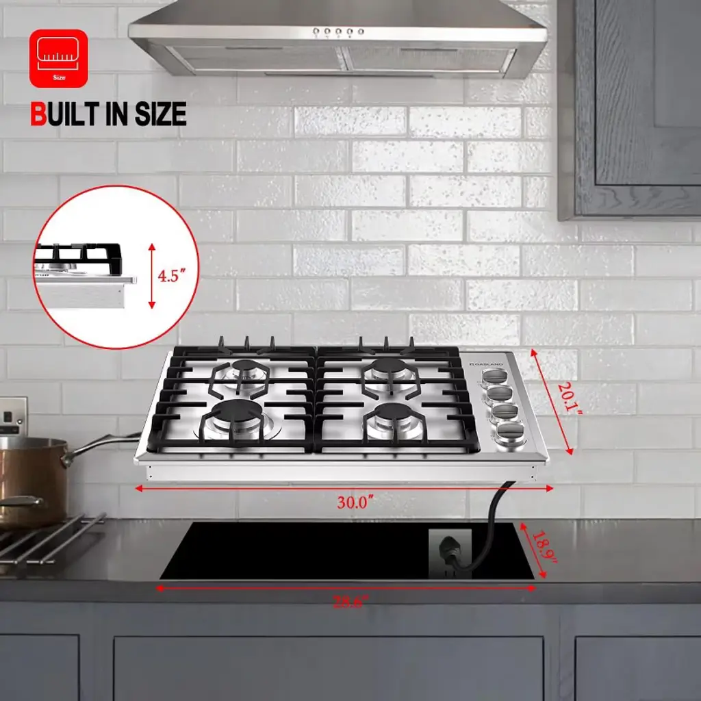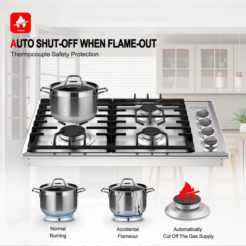 Gasland Pro Gh2304ss 30-inch 4-burner Built-in Side Knob Control Gas Cooktop, Ng/lpg Convertible, Stainless Steel