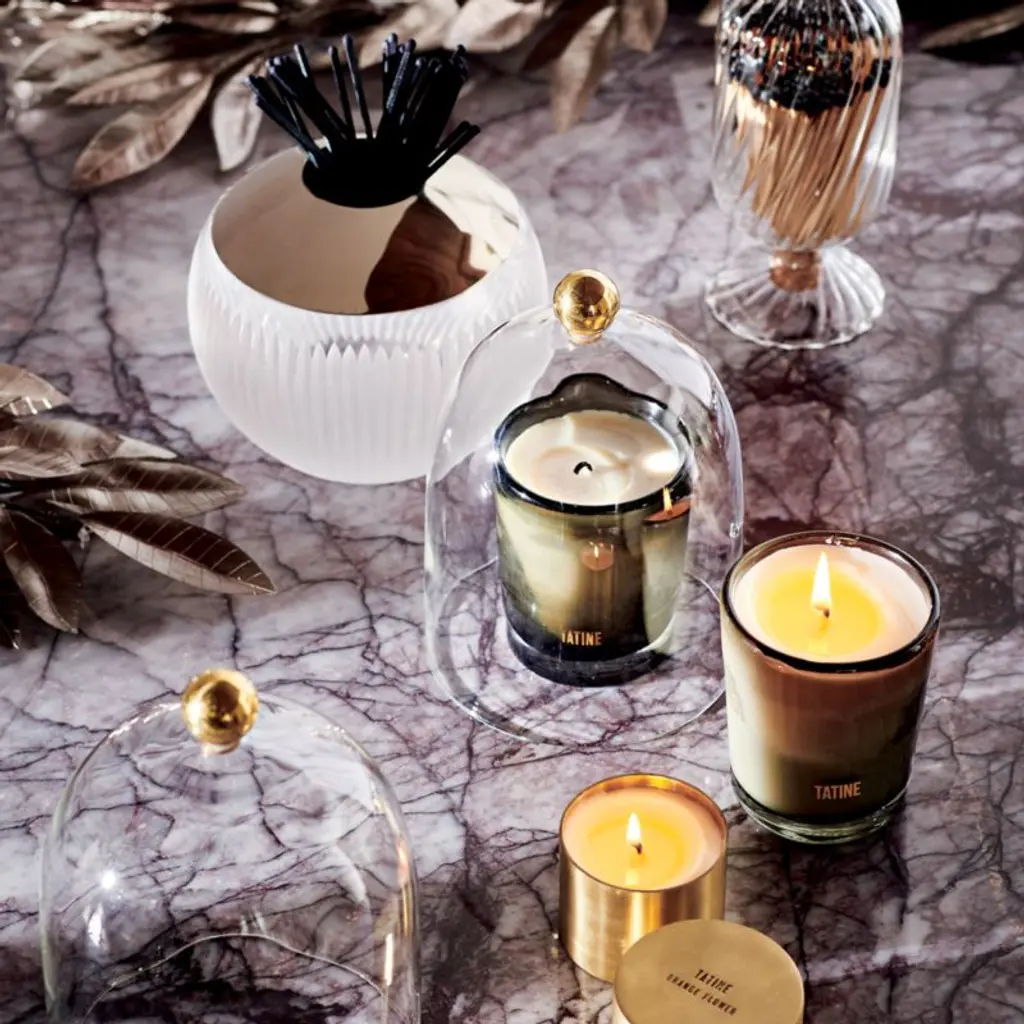 Glass cloche with unlacquered brass knob is both a practical way to keep dust from falling on candles and a gorgeous decorative object on its own. Elevates even the simplest candle (but do not use it while burning). Because the knob is crafted of unlacquered brass, it will change in color over time and develop a patina, adding character and heirloom quality as the years go on. Also works to spotlight other small decor pieces, not just candles. CB2 exclusive.