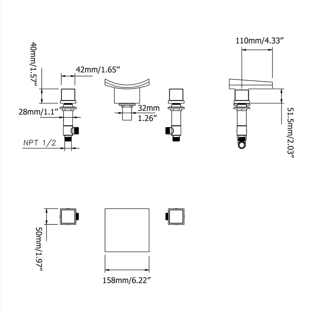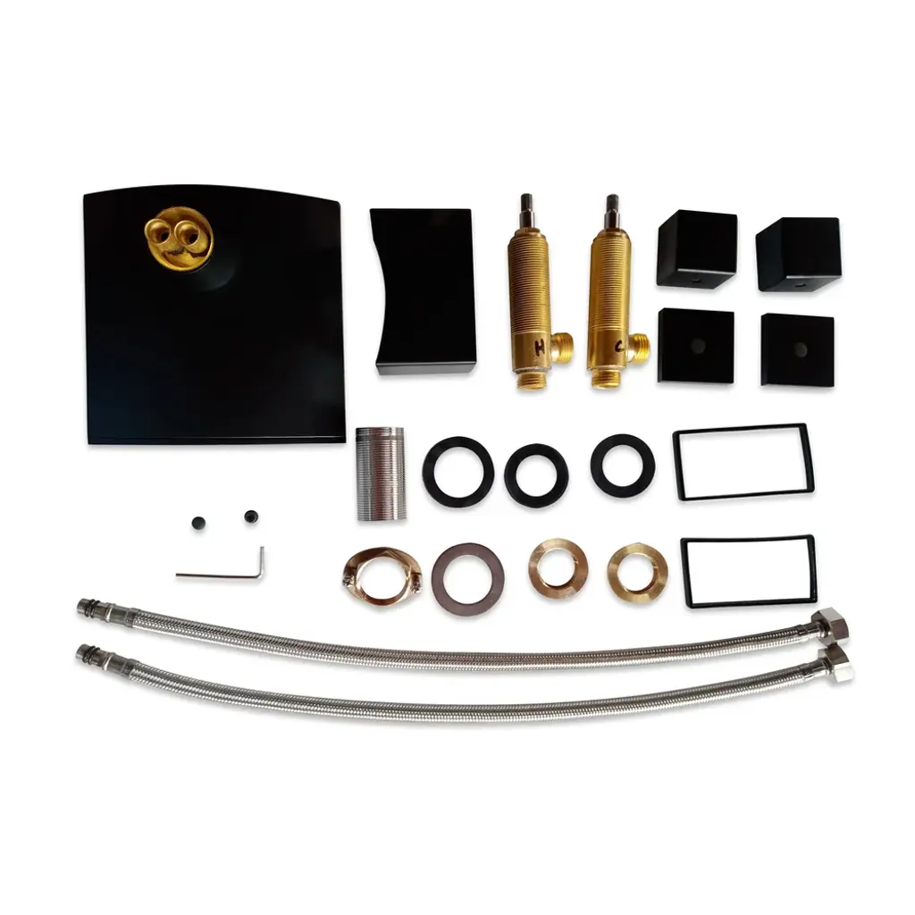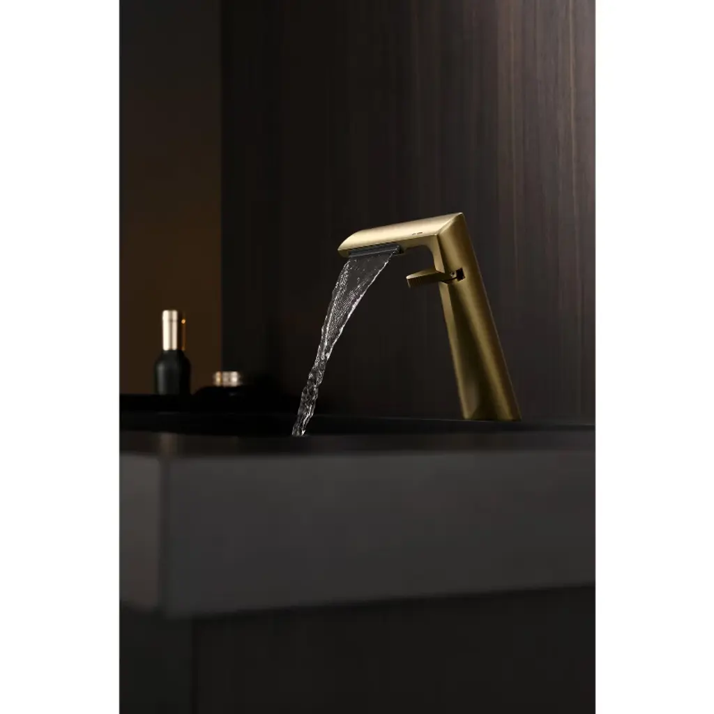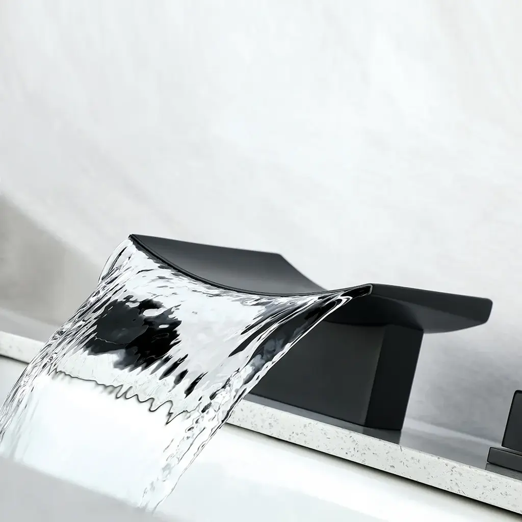 Grop waterfall faucet offers outstanding performance, simplified installation, and ease of cleaning. This Grop widespread sink faucet features clean lines with smooth edges that add a modern, minimalist appeal to any bathroom. Boasting a gently curved spout, it sends out a sheet of laminar water flow to create a natural waterfall effect. Paired with two square knob handles, this faucet offers easy adjustment on the hot and cold water flow. Solid brass construction with premium matte black finish ensures long-lasting use and creates a shiny accent as well.
