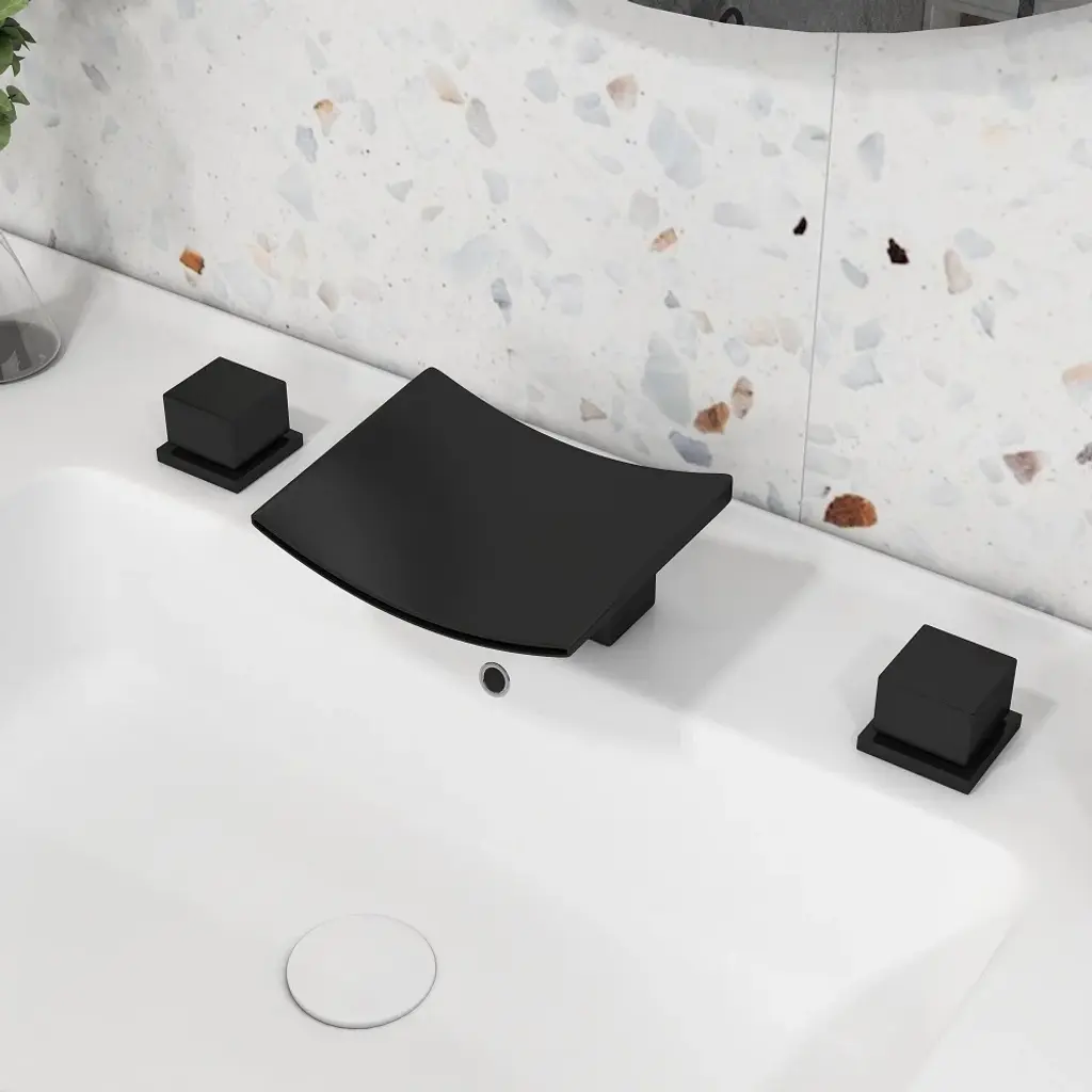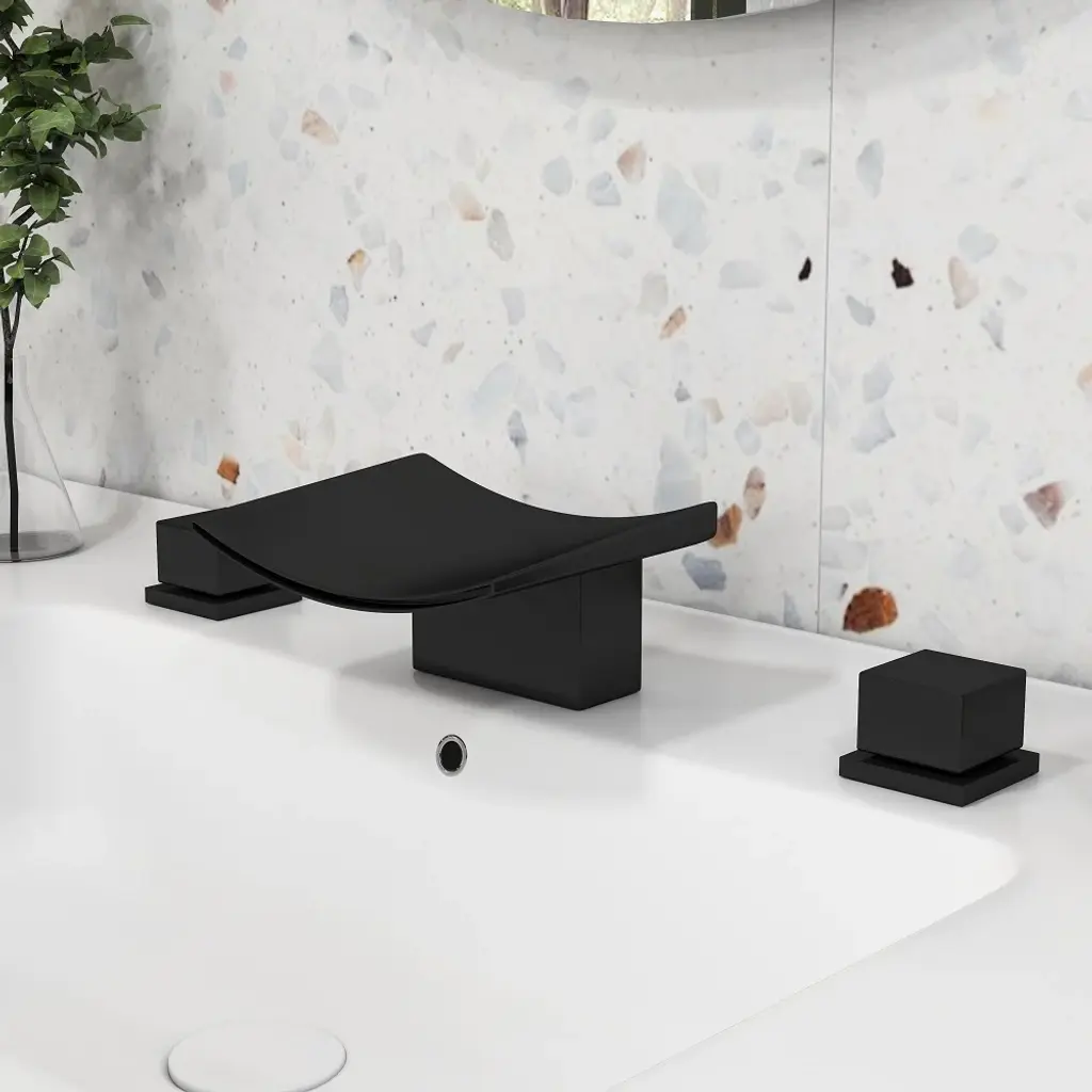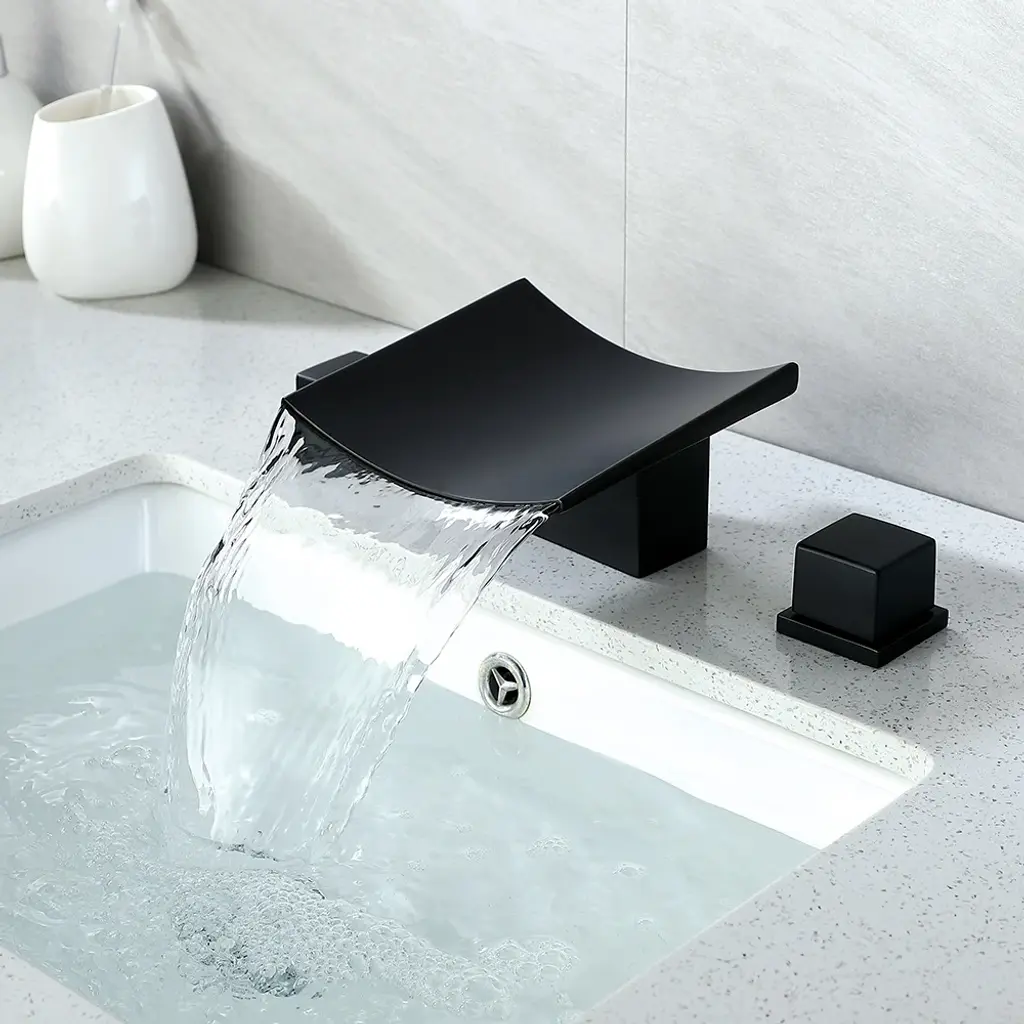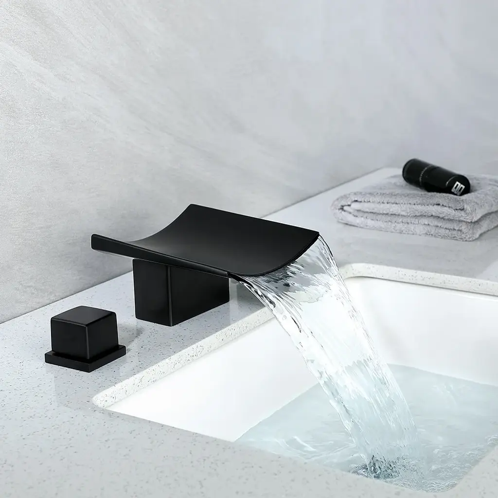 Grop Matte Black Waterfall Widespread Bathroom Sink Faucet Double Knobs