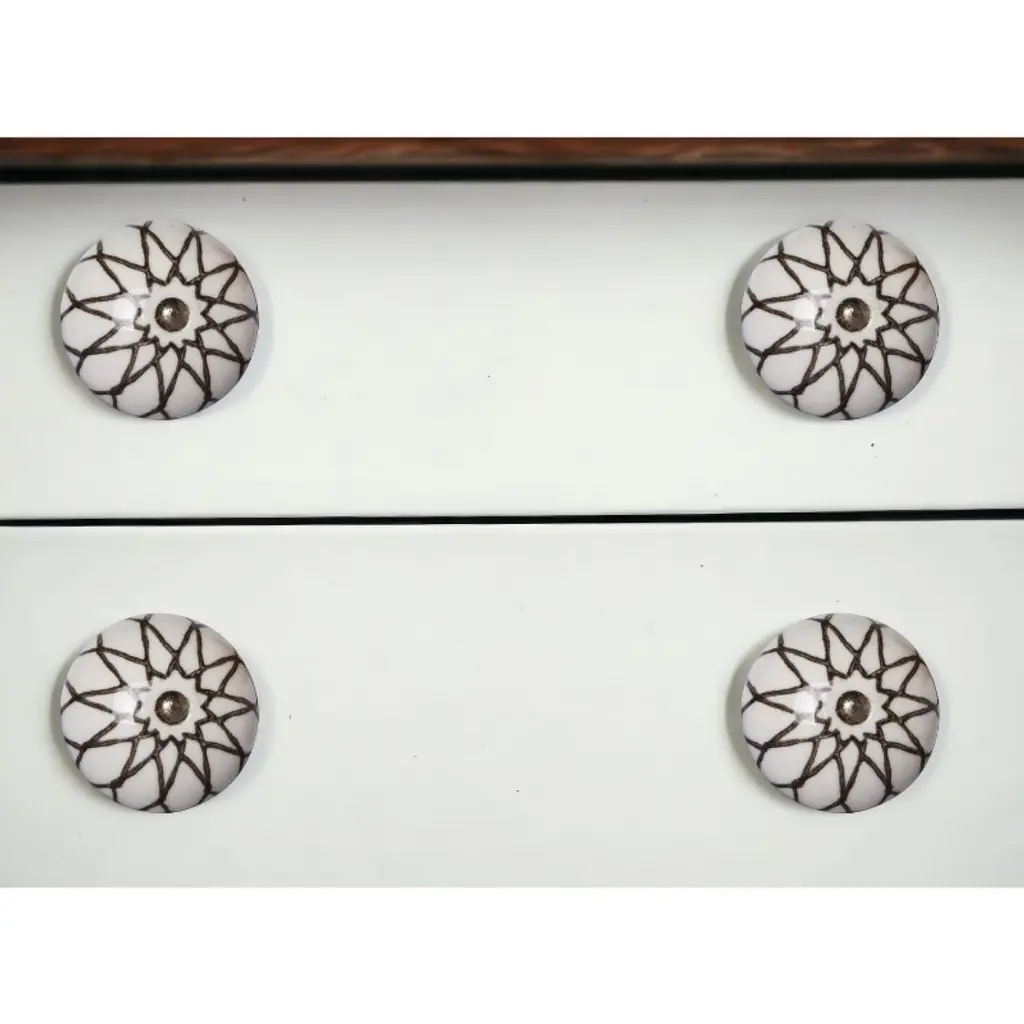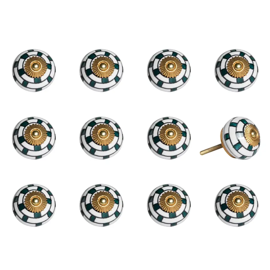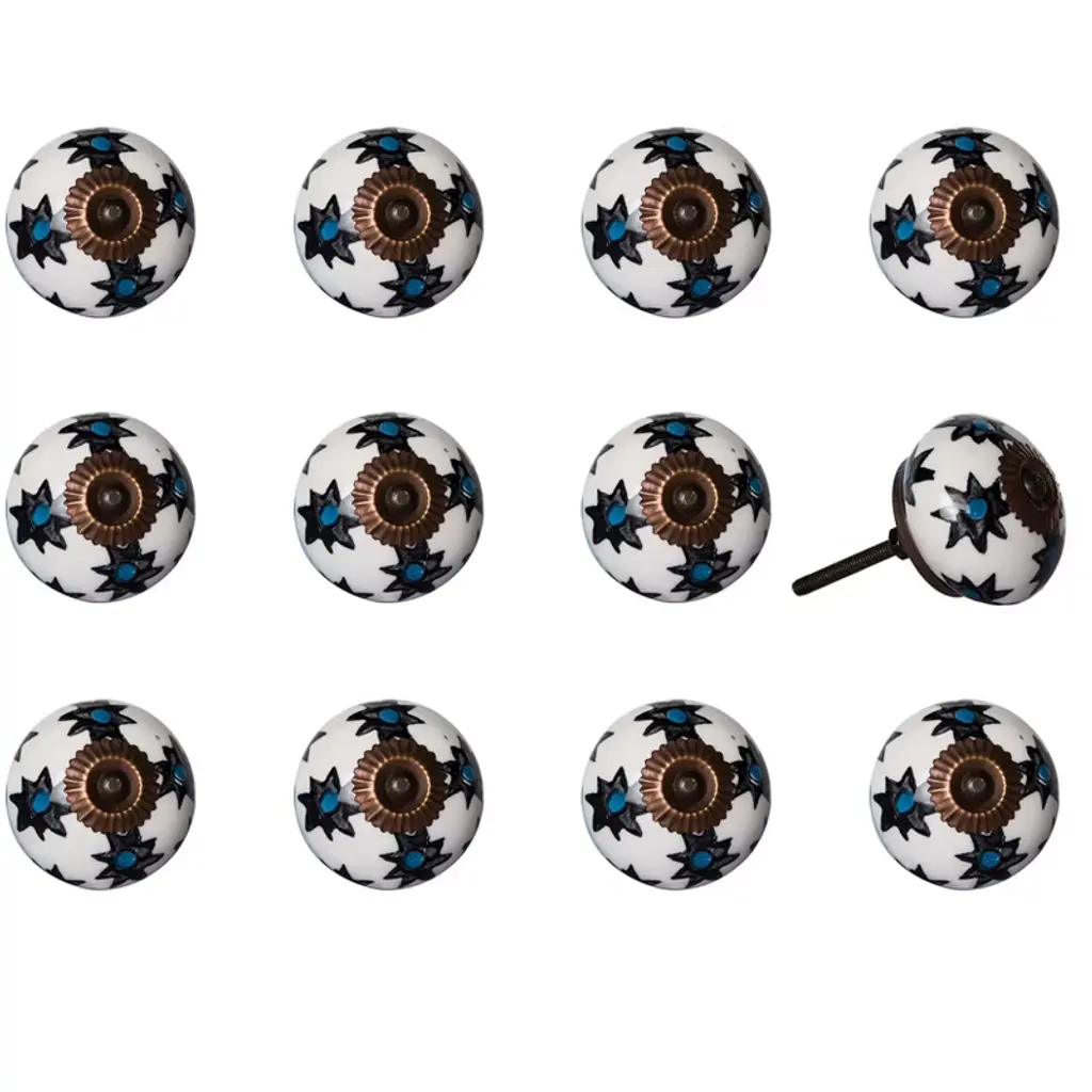 Upgrade your space with a high end look with this set of eight brown ceramic and metal drawer pull knobs. A favorite of designers and diyer's alike, these high quality round knob traditional style knobs are versatile in use and will change up the look of your existing furniture and cabinetry in a snap. Hand-painted by talented artisans, these knobs will add a touch of artisanal design. 1.5-inch h x 1.5-inch w x 1.5-inch d.