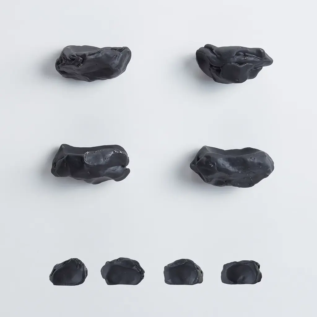 The perfect accent piece for a clean and sober door of a minimalist interior, this doorknob features a fossil-like shape of unexpected allure. Part of the Impronta series designed by Nicole Valenti, it is minutely crafted by hand of etched brass, finished in a pitch-black hue for a stunning visual impact.
