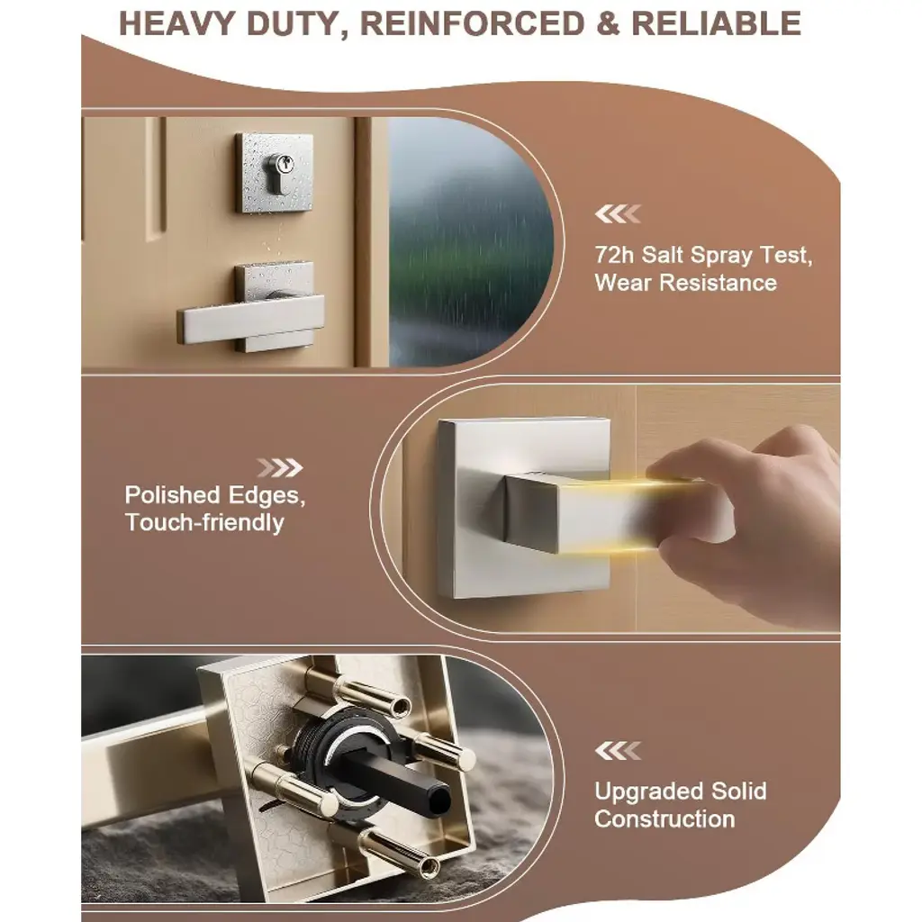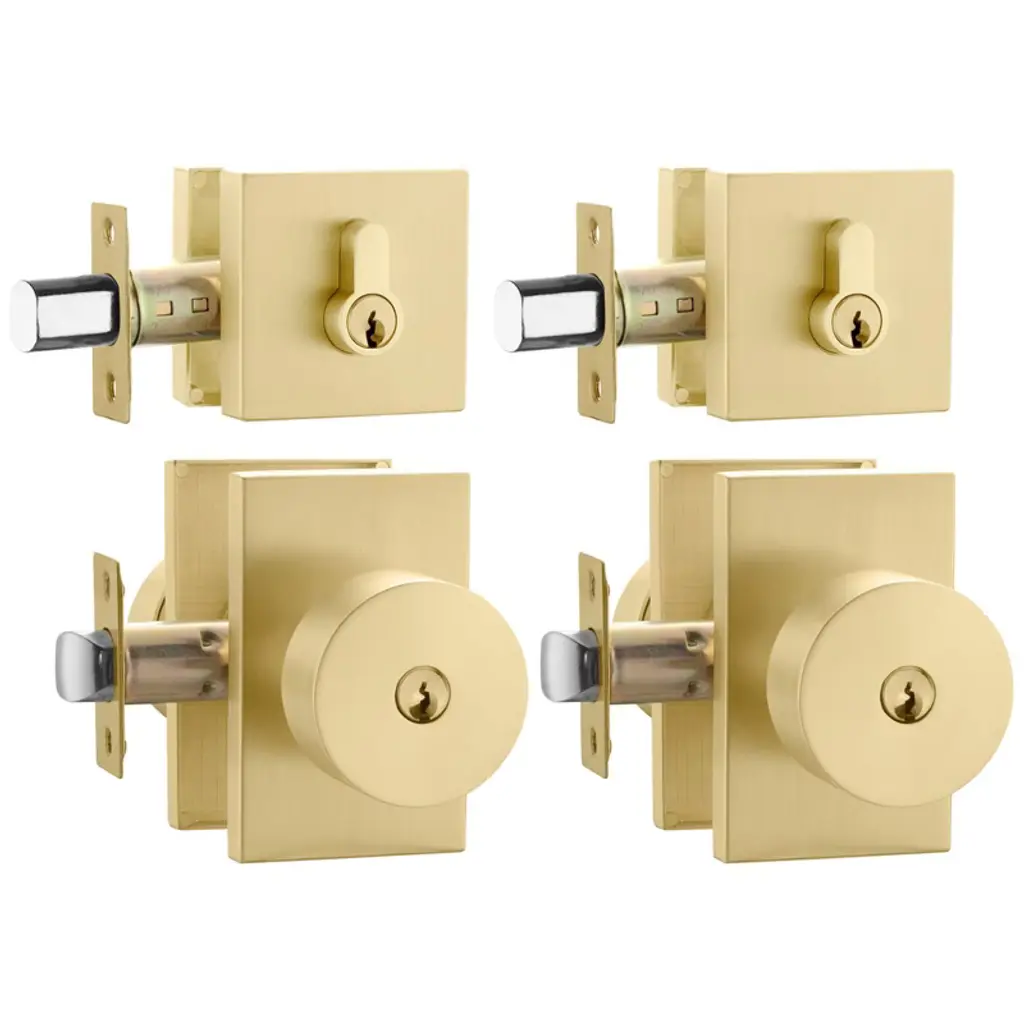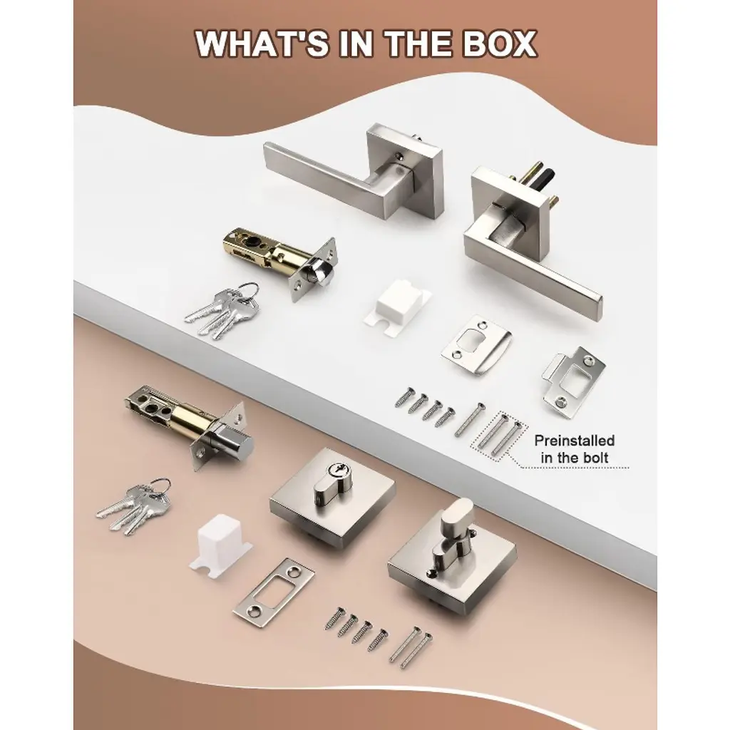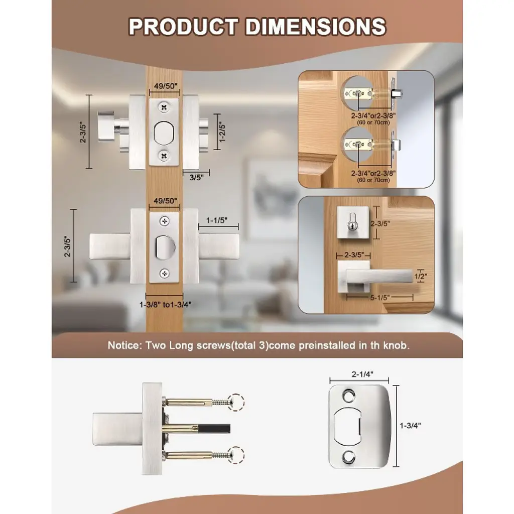Upgrade your door security with this 3 - pack square door knob and deadbolt set. The set features a single - sided deadbolt with a passage lever. The exterior deadbolt is key - operated for security, while the interior passage lever allows for keyless operation, perfect for interior doors. Each deadbolt comes with 3 identical keys, so one key can open all designated doors, offering great convenience for families and property owners. Made from high - quality zinc alloy, it has passed strict tests and is built to last over 10 years. The adjustable latch fits standard door thicknesses, and installation is a breeze with just a screwdriver and all necessary parts included. Whether it's for your home, private office, or storage room, this lockset provides both security and convenience, suitable for various door styles in residential and commercial applications.